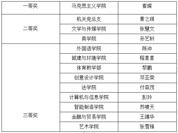 学校党委书记章德胜,党委副书记、纪委书记、副校长刘玉侠,党委委员、组织(统战)部部长卢淑芳以及各党总支(直属支部)书记、副书记、组织员、师生党员代表出席了决赛现场。马克思主义学院院长许修杰、机关党总支书记陈东汉、文学与传媒学院党总支书记陈跃、马克思主义学院党支部书记史雍真、党委宣传部副部长黄璀担任本次决赛评委。