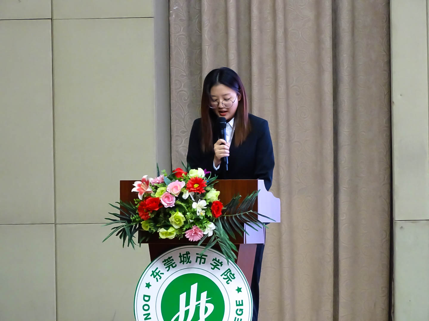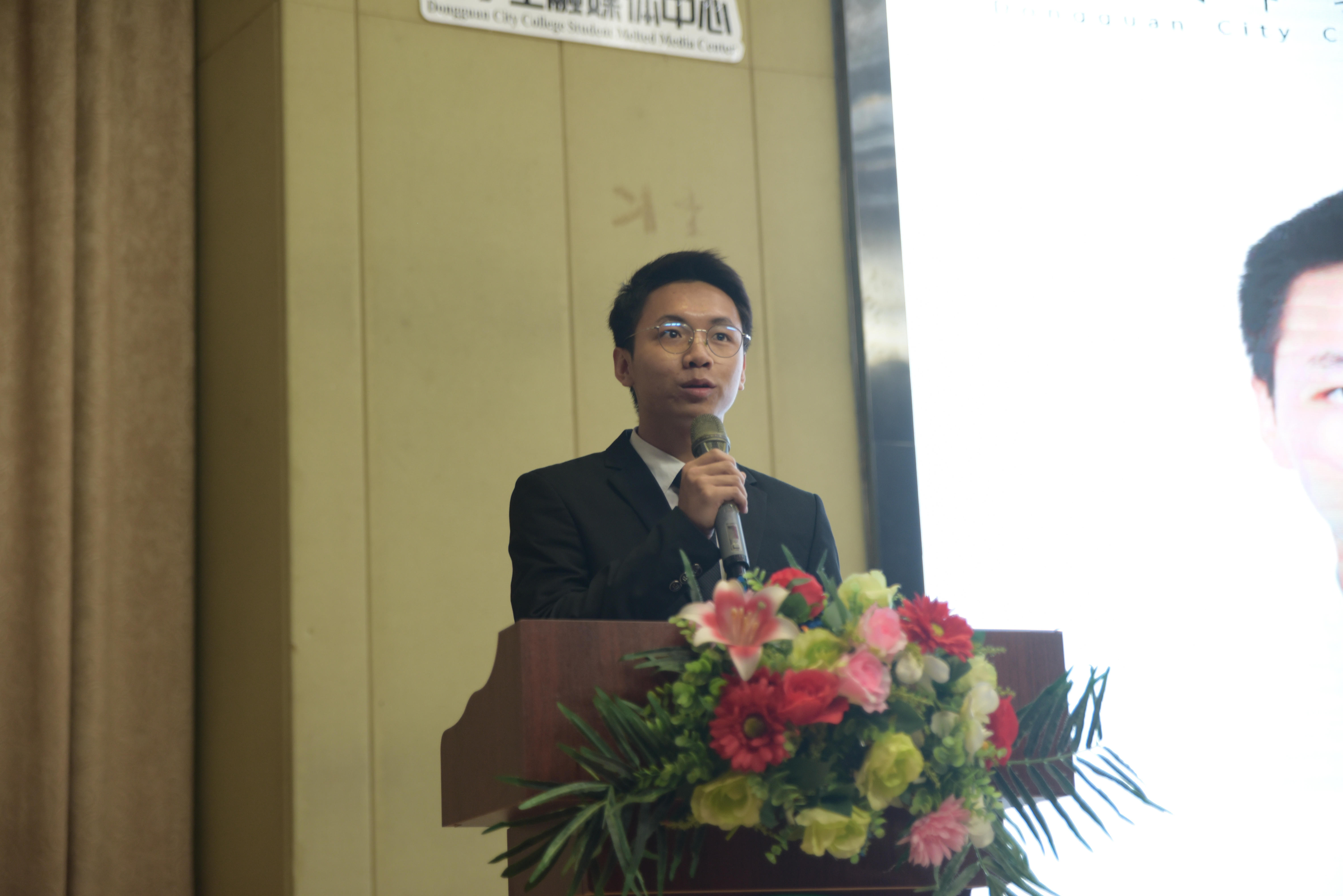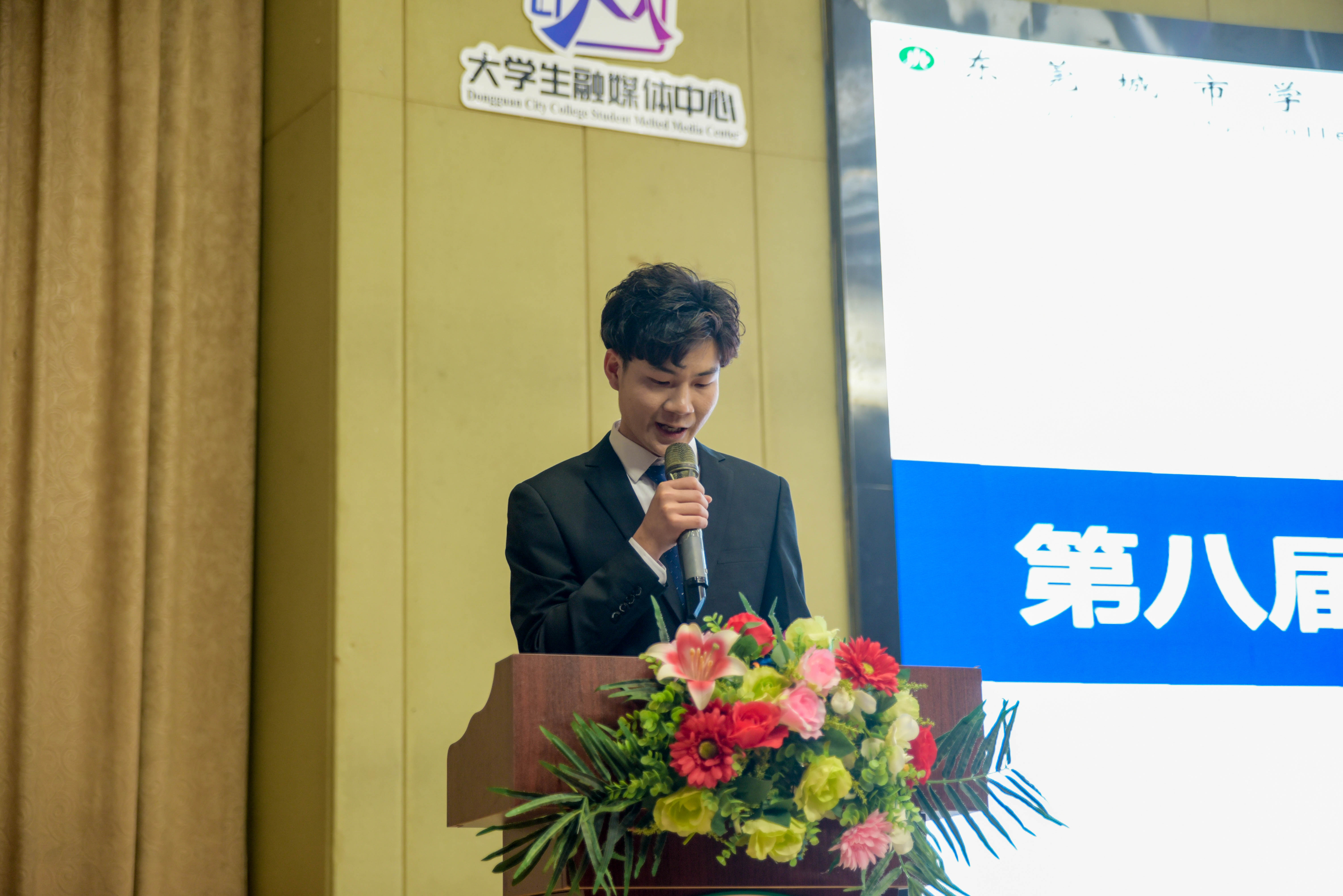叶云峰副主任致辞,他表示大媒是学校党委宣传部(融媒体中心)下属的学生组织,要始终传递正能量,讲述身边好故事为宗旨,继续配合做好学校各项宣传工作。他对大媒新进成员提出四点要求。一是坚持正确向导,提高校园媒体领导力; 二是练就过硬本领,提升校园媒体竞争力; 三是增强传播时效,讲好城院人故事,传递好城院声音;四是加强工作团队建设,团建互助相融。