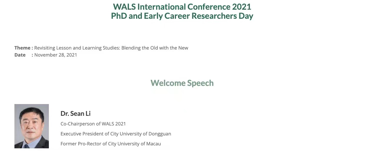 beat365官网执行校长李树英作为联席主席出席WALS2021国际研讨会