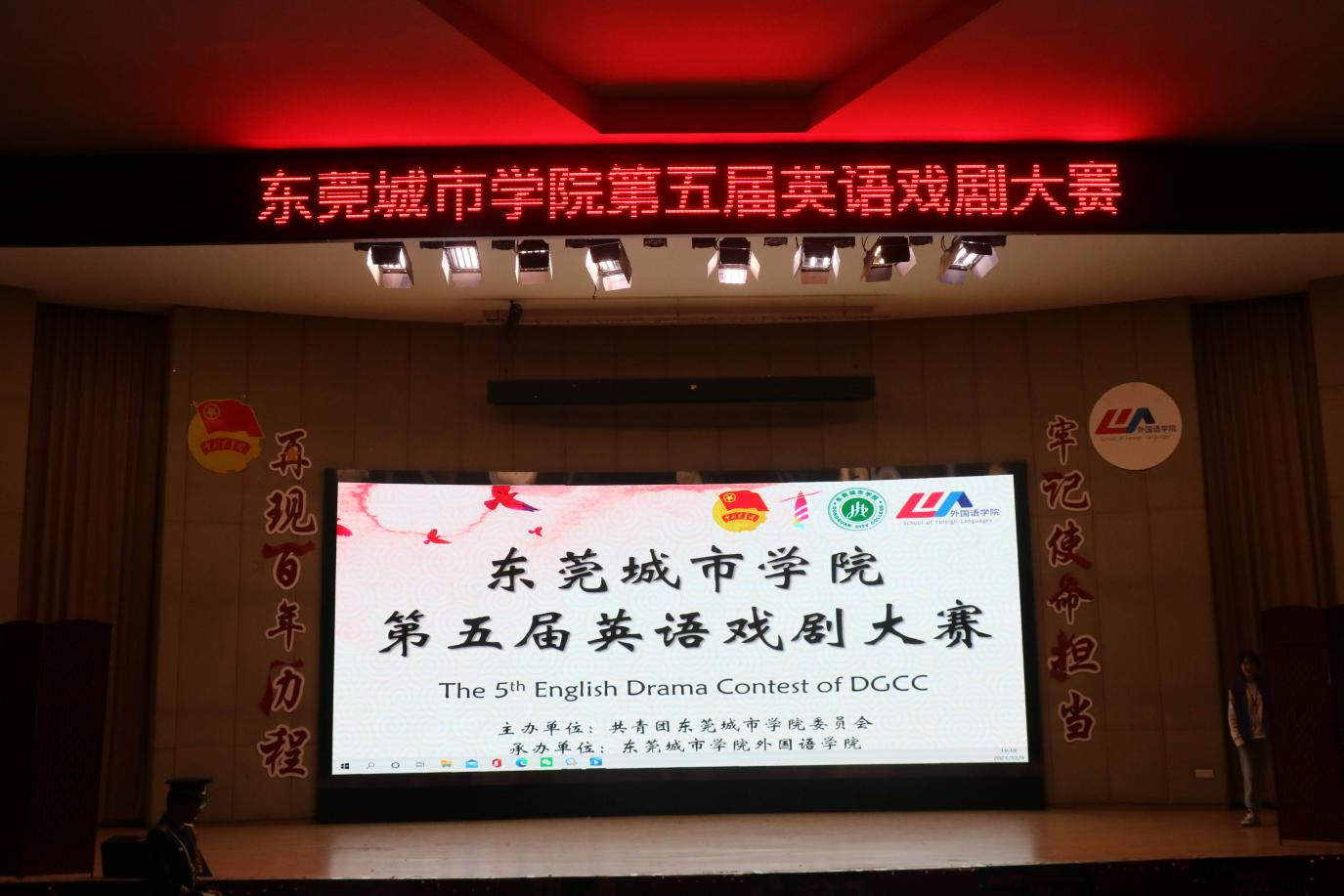 2021年,中国共产党迎来了百年华诞。百年征程波澜壮阔,百年初心历久弥坚。为了让学生们讲好中国故事,表达爱国情怀,2021年12日9日晚上,由共青团beat365官方网站主办,外国语学院承办的beat365官方网站第五届英语戏剧大赛决赛于学术报告厅拉开帷幕。莅临本次比赛的嘉宾有beat365官网执行校长李树英,党委副书记、副校长刘玉侠,学生处处长、武装部部长杜鹏举,马克思主义学院院长许修杰,艺术学院院长张征,艺术学院党总支书记、副院长康慧丽,外国语学院全体领导和老师。其中,马克思主义学院思想道德与法治教研室主任陈海华、艺术学院陈伊航、外国语学院副院长李玲玲和外国语学院王歆军四位老师应邀作为本次决赛评委出席。