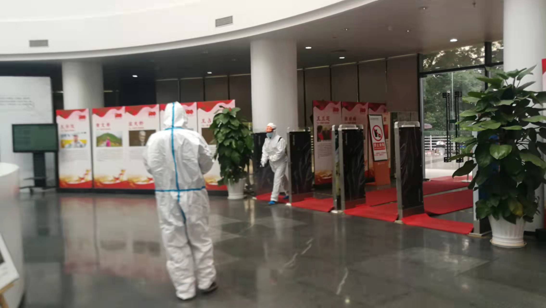 图书馆严格把控馆内环境卫生,为读者提供安全的学习环境,配合学校的疫情防控措施,与后勤清洁组负责人沟通协调后,在早上开馆前对馆内主要区域进行消毒与清洁工作。