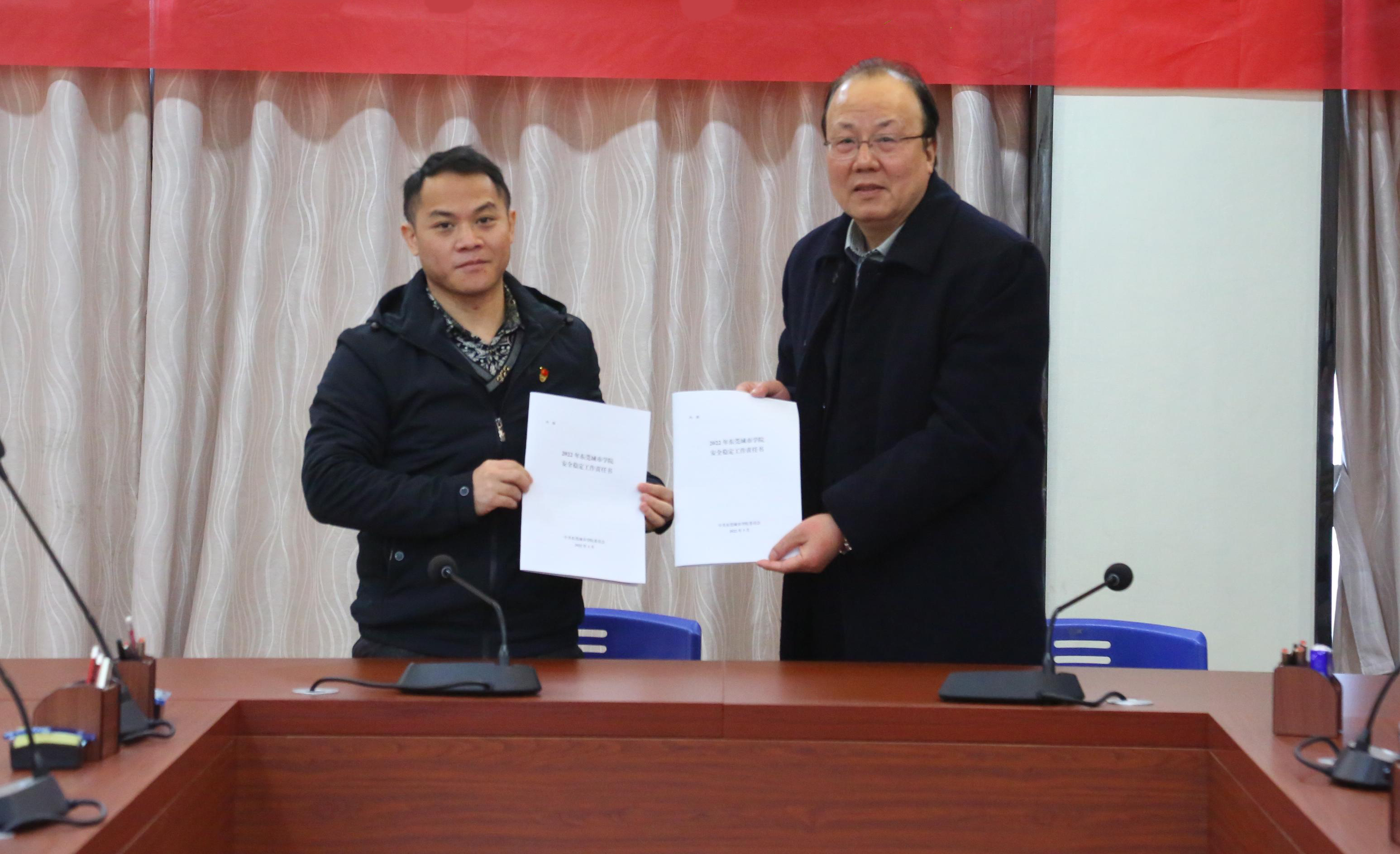 会上,学校党委下发了《2022年政治安全意识形态安全工作实施方案》,并与各责任单位签订了2022年安全稳定工作责任书。