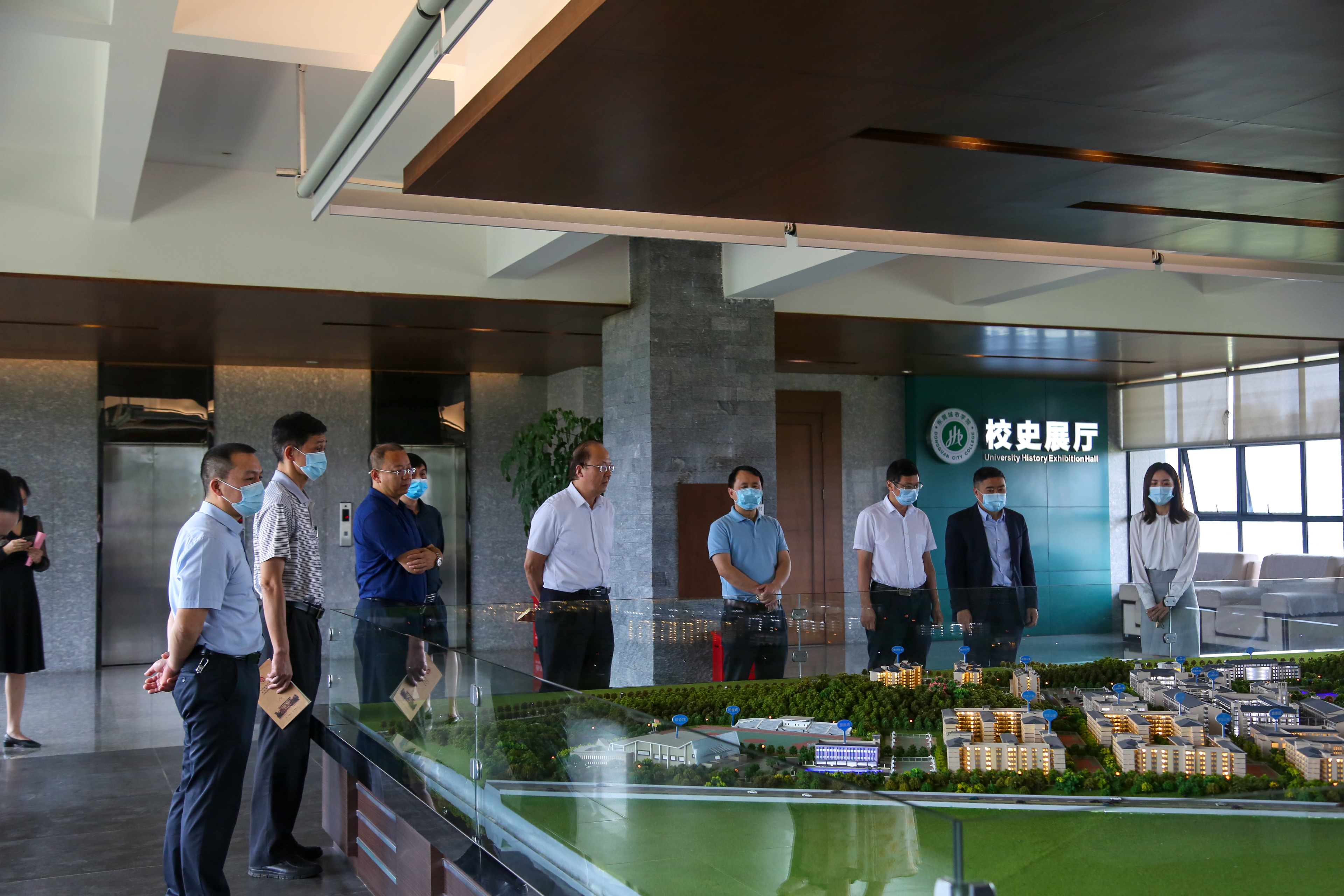 张卫红主席一行在beat365官网执行校长李树英、党委书记章德胜等校领导的陪同下,俯瞰了校园美景,听取了beat365官网校园整体布局的沙盘讲解。随后双方在行政楼505会议室召开了调研座谈会,会议由杨勇虎处长主持。