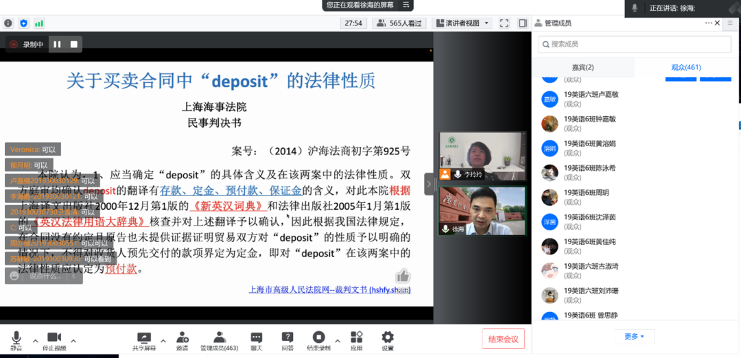 讲座伊始,徐教授解释了词典的含义和作用,谈到其所描述的语言是客观的,没有偏见的。通过引用法律判决书中《新英汉词典》与《英汉法律用语大辞典》对“deposit”一词解释的例子,阐述了词典具有权威性这一特点。但是,从批判话语分析视角出发,徐教授对词典的权威性提出了质疑。