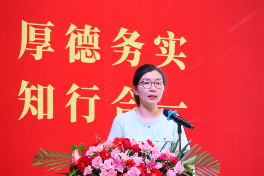 创意设计学院副院长何帅森作为教师代表发言。她深情地讲述了自己来到城院工作16年来的经历与感悟。她说在这16年里,她从一个讲台上都紧张的人到专业骨干,在城院不断成长。虽然取得了教学上的一些成绩荣誉,但最让她有幸福感的是师生之间的信任、尊敬与互动。教师应当做学生的星火,做学生人生道路的领航员。她表示将要继续做好教书育人工作,为学校实现办学愿景而努力,也愿城院教师桃李满天下。