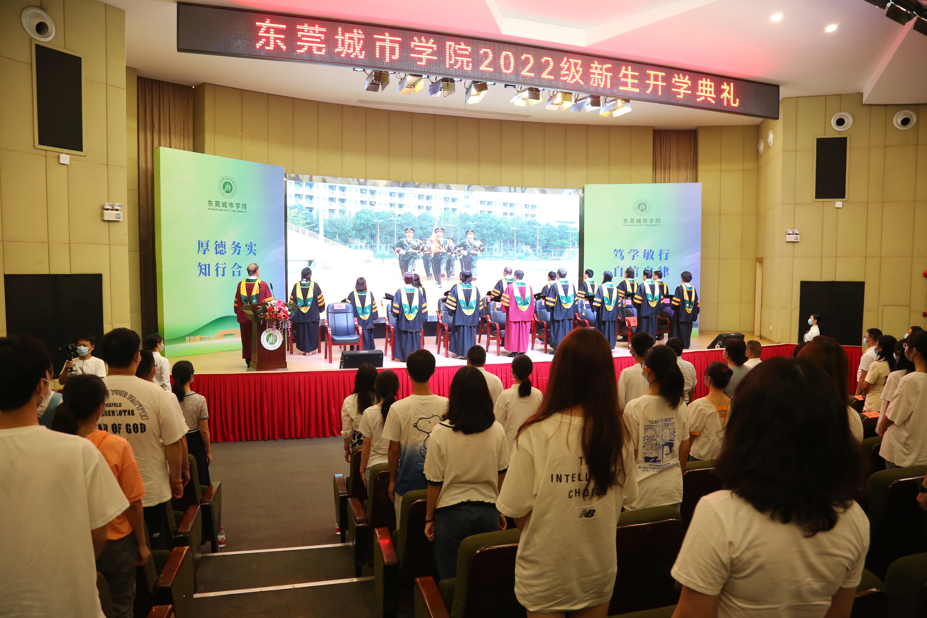 9月16日 ,beat365官网在学术报告厅举行2022级新生开学典礼,广东省高等教育学会会长,原广东省教育厅党组副书记、常务副厅长魏中林教授,校领导李树英、章德胜、刘玉侠、周庆、麦绮琳、方伟华、陈葆华以及学术委员会成员着盛装出席。各行政部门负责人、师生代表参加了开学典礼。典礼由党委书记章德胜主持,以“现场典礼+云直播”形式进行,在线观看开学典礼10余万人次。