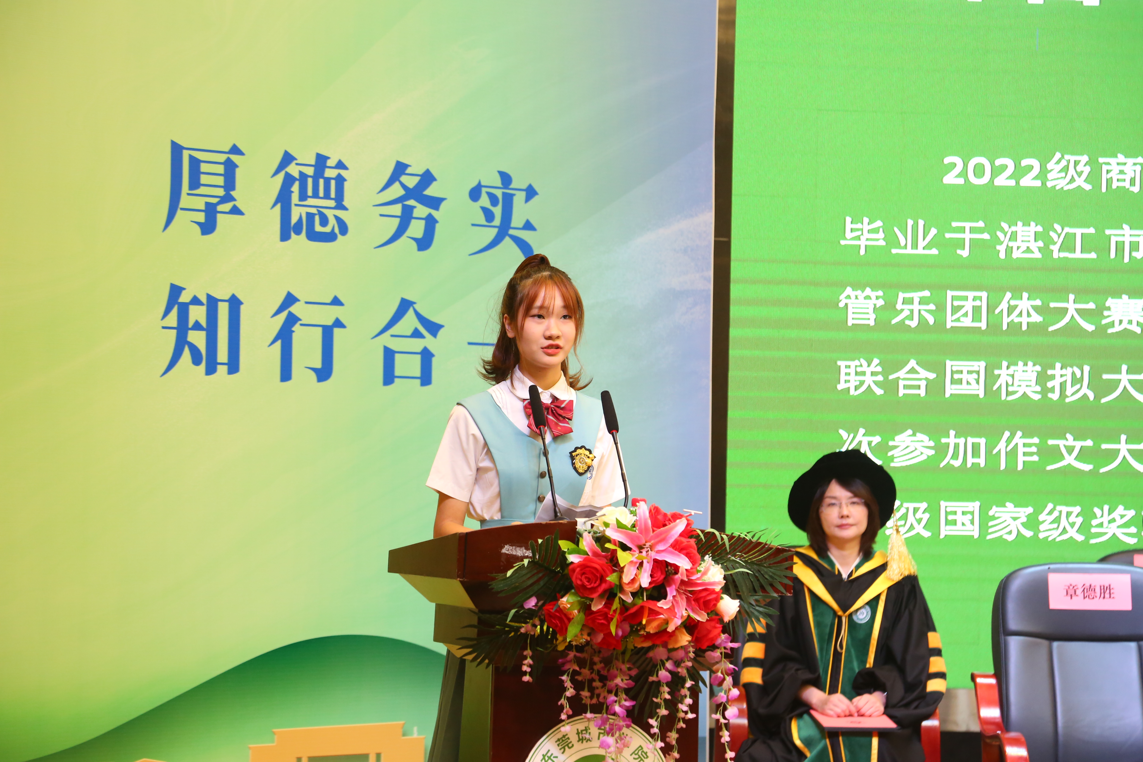 语言文化学院2022级商务英语专业钟若瑜同学作为新生代表发言,向关心我们学习和生活的领导老师,向师兄师姐表达真挚的感谢!她表示加入城院是一个新的起点,从此大家都是“城院人”,开启新的篇章。作为新生,要贯彻“厚德务实,知行合一”的校训精神,像李树英执行校长在《致新生的一封信》中所提倡的求真力行,融入团队和集体,全面提升自我素养,做一专多才、德才兼备的时代英才。