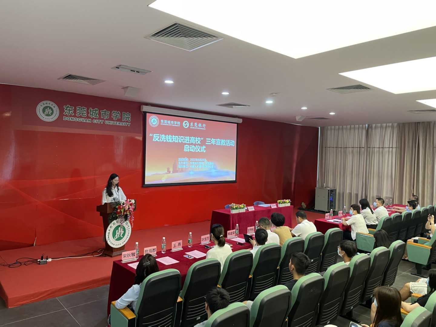 最后,中国人民银行东莞市中心支行反洗钱科科长刘朝利致辞。她强调了维护金融安全和开展反洗钱活动对于社会稳定、国家金融安全、人民生命和财产安全的正向作用。她指出,少年强则中国强,将反洗钱通识教育融入高校人才培养过程,不仅能引导学生树立良好的防洗钱意识,还能为预防洗钱活动汇聚新生力量。