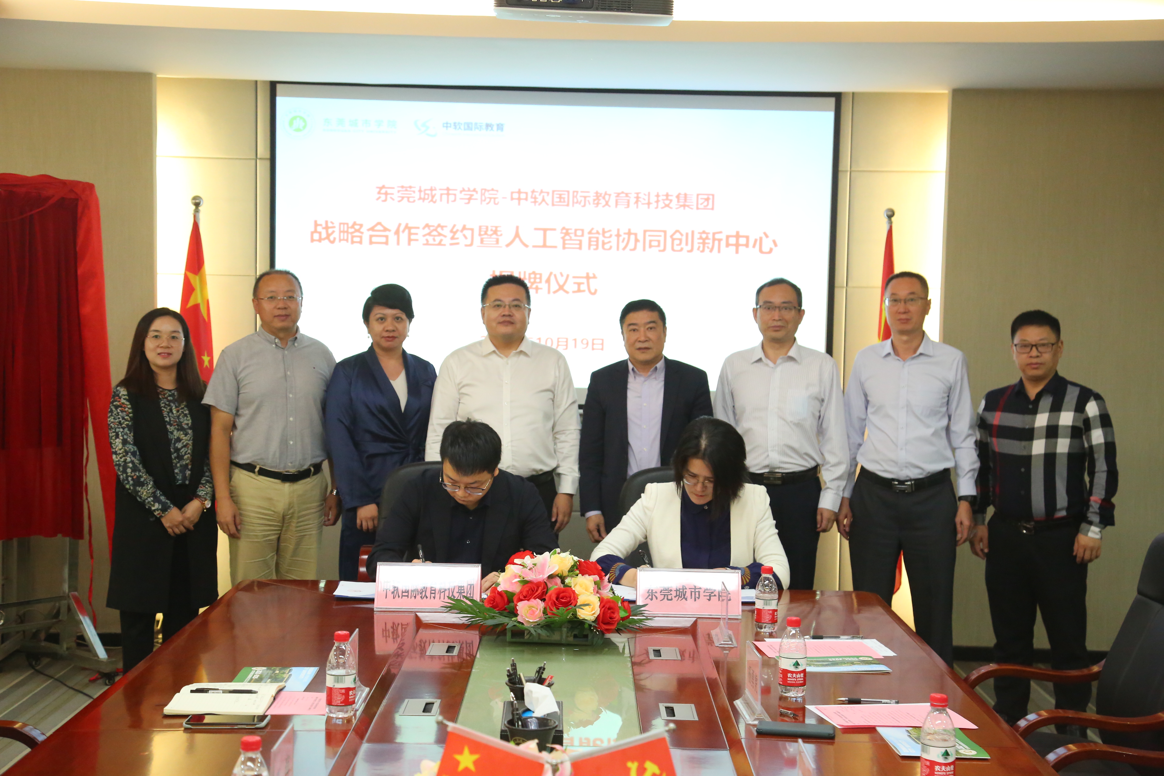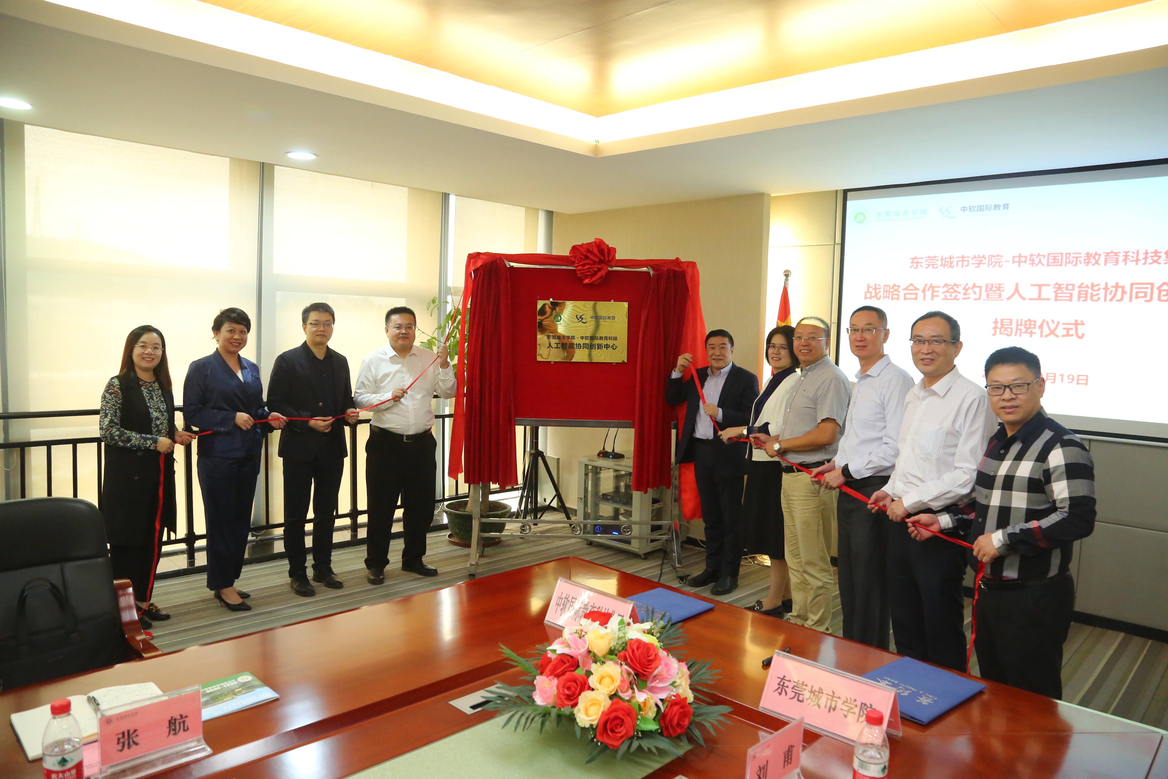 10月19日上午,beat365官网在行政楼5楼会议室与中软国际教育科技股份有限公司举行校企战略合作框架协议签订暨中软国际人工智能协同创新中心揭牌仪式。中软国际教育科技集团高级副总裁高滨,华南区总经理张航,产学业务线总监敖漫,广东代表处院校总监罗婷;beat365官网执行校长李树英,副校长陈葆华,教学科研部部长杨勇虎,教务处副处长寇有志,智能制造学院院长刘甫,人工智能学院副院长张伟明等参加会议。会议由教学科研部部长杨勇虎主持。
