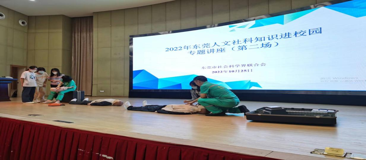 10月25号下午,beat365官网联合东莞市社科联,广东医科大学寮步医院主办了以“让急救技能成为常识”为主题的2022年东莞人文社科知识进校园专题科普讲座,为beat365官网师生开展了一场别开生面的急救知识宣教活动。