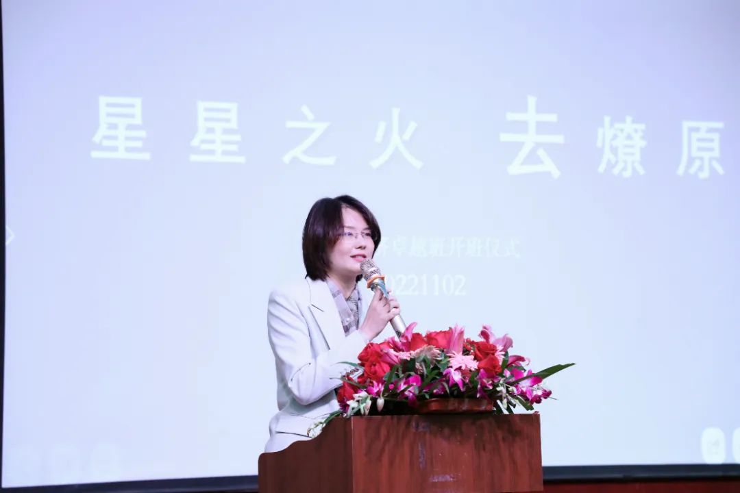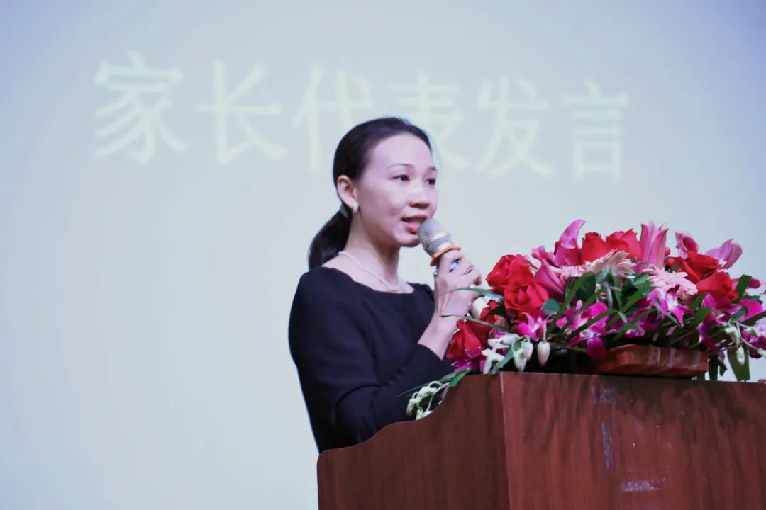 学生家长代表陈赛金女士进行了发言,她感谢学校创造优越学习条件并精心培育学生,感谢老师们为卓越班的创建辛勤付出。她希望孩子们要积极努力、不倦学习,在求学、求知、求真的路上不断前进。