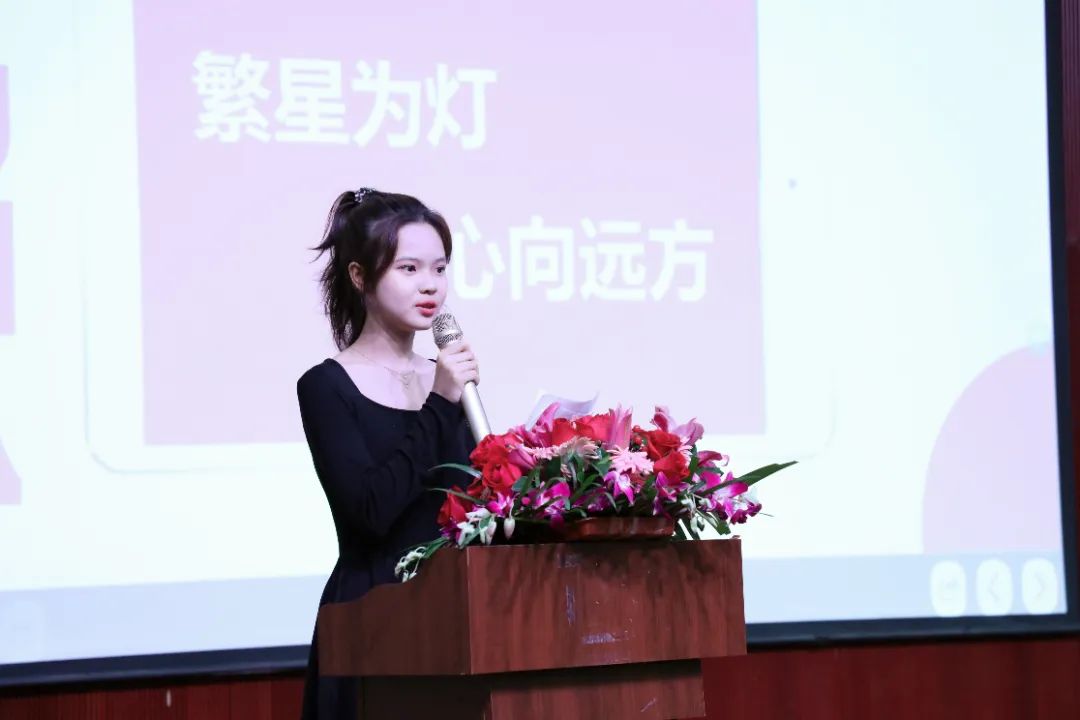 随后,卓越班学员代表江绮晴发言,她表示很荣幸能选拔上进入卓越班,让自己有了更加明确的方向,未来将会加强专业知识,树立创新意识,激发创造力,贯彻“厚德务实 知行合一”的校训,做到学与思结合、理论与实际结合。希望创新班每一名学生都不断追求卓越,为其他学子树立榜样!
