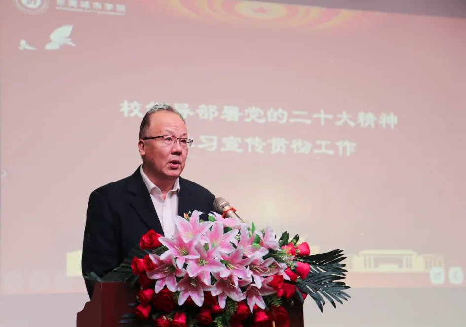 beat365官方网站党委书记章德胜指出,学习贯彻党的二十大精神是当前和今后一个时期的首要政治任务,要切实把党的二十大关于教育的各项部署要求落到实处。强调学校要围绕“五学四做、十大活动”部署学校学习宣传贯彻党的二十大精神工作。要强化“五学”,通过领导带头学、师生争先学、组织共建学、学生课堂学和宣讲深入学,推动党的二十大精神入脑入心;要践行“四做”,结合学科专业,做好特色活动;深化研究阐释,做好理论研究;抓住亮点特色,做好宣传报道;强调贯彻落实,做出工作实效,为全面推进学校高质量发展汇聚强大力量。同时,结合学校实际,开展“讲”“学”“研”“说”“赛”“唱”“诵”“思”“承”“领”十项品牌活动,深入基层、深入师生群众,强化使命担当,听党话、跟党走。确保党的二十大精神学习宣传贯彻工作扎实开展、有序推进。