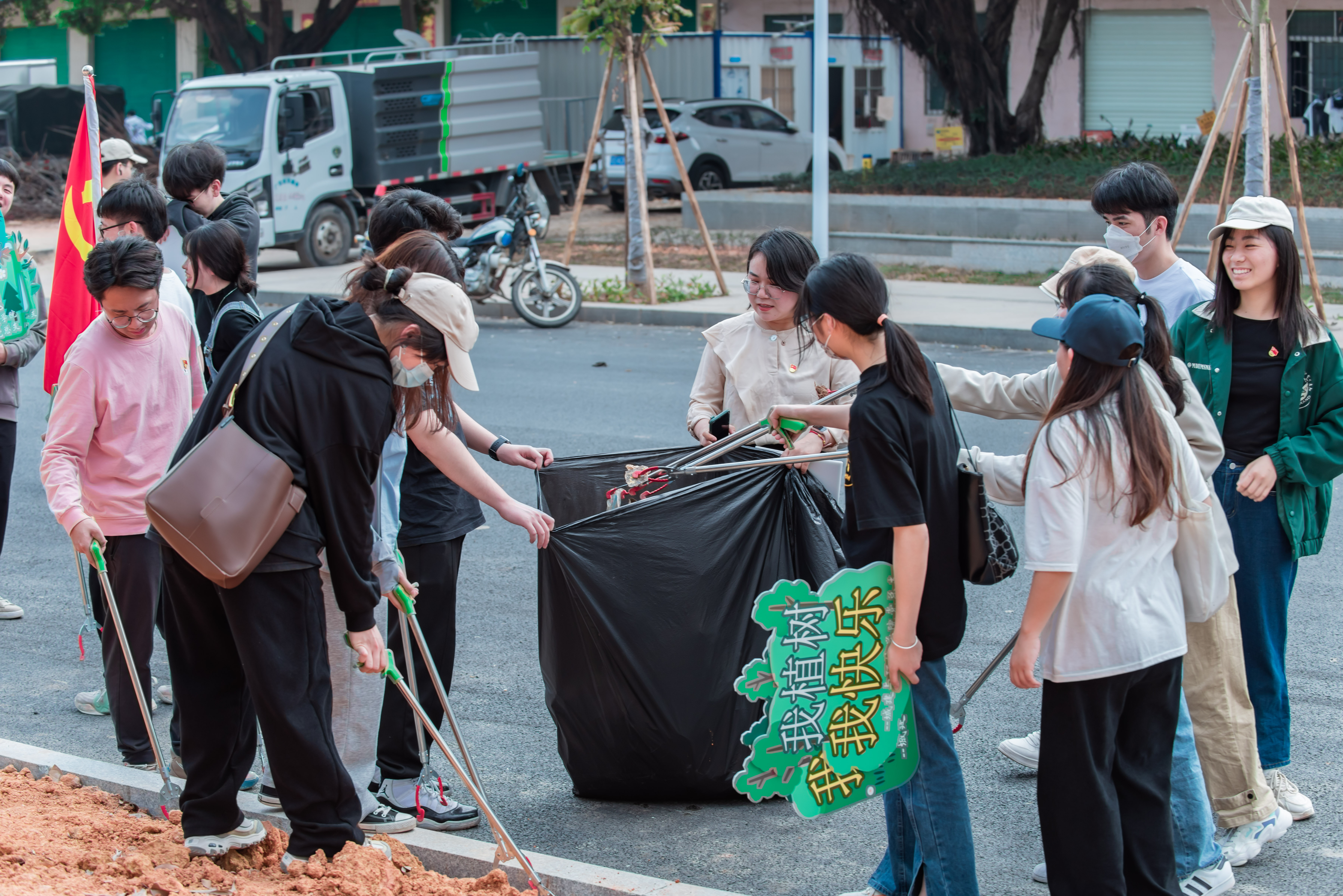 在第45个植树节来临之际,为深入贯彻习近平总书记“绿水青山就是金山银山”理念,积极响应党中央关于广大南粤青年自觉支持和倡导植绿护绿、爱护环境、善待自然的号召,践行绿色低碳生活方式,守护好东莞的绿水青山,建设绿美东莞,助推东莞乡村振兴,3月9日下午,beat365官方网站城建与环境学院师生赴寮步上底村开展义务植树、村庄清洁公益活动。寮步镇上底村党总支书记叶绍如、老干部党支部书记刘伟光,beat365官方网站党委办公室主任姜虹,城建与环境学院党总支书记曹镭、副院长郭文显及寮步镇组织办工作人员、上底村两委干部、城环学院师生代表参加本次活动。