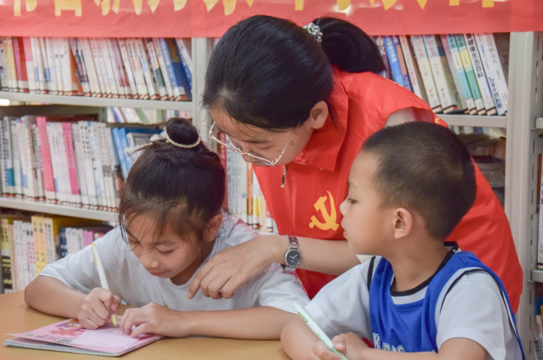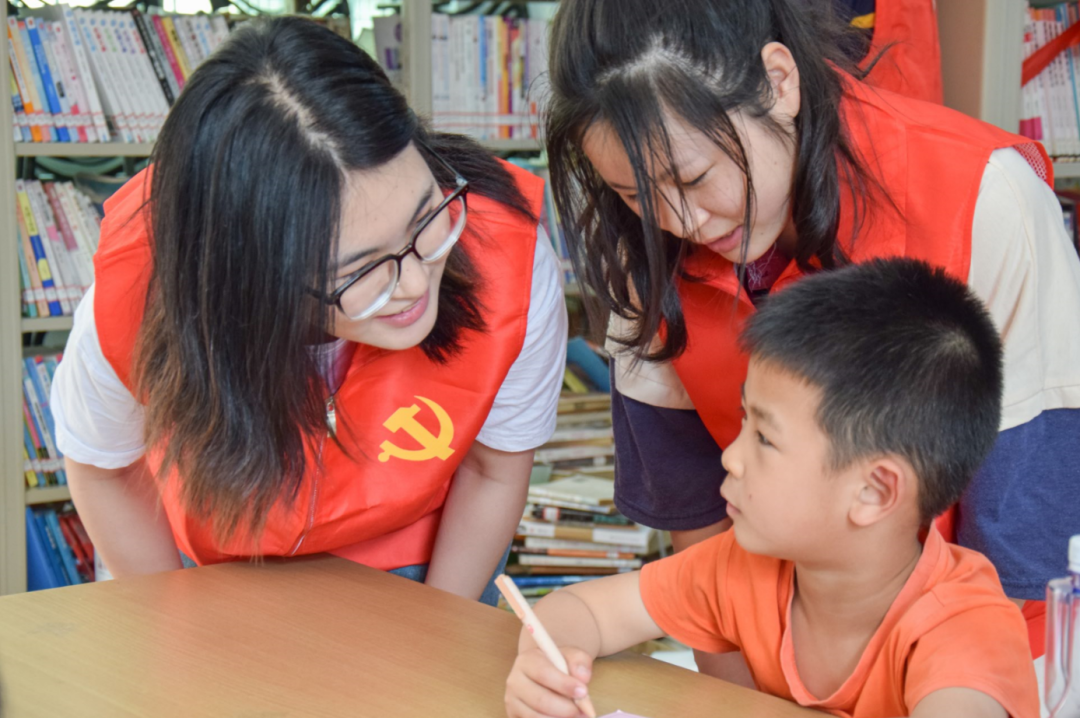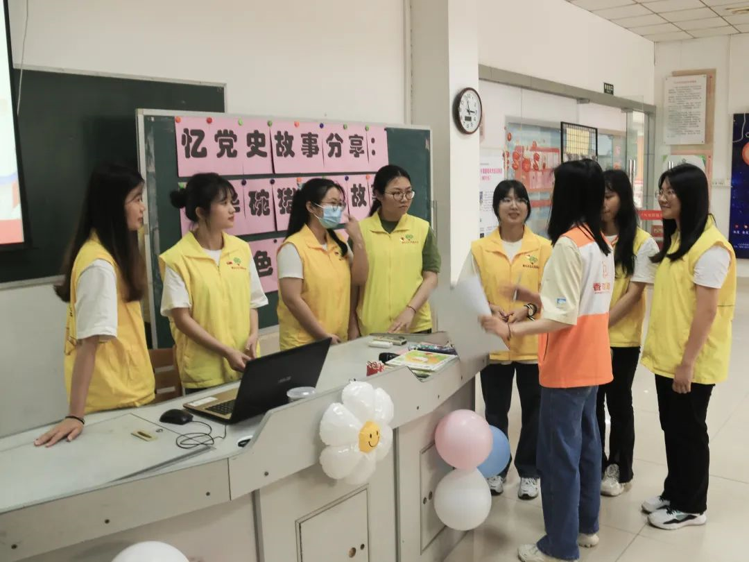 在横坑社区“我心里的好故事”分享会活动现场,城院学生党员们绘声绘色地为孩子们演说红色革命故事《金色的鱼钩》《半碗猪油的故事》,指导孩子们进行红色主题绘画,培养了小朋友们的爱国主义情怀。