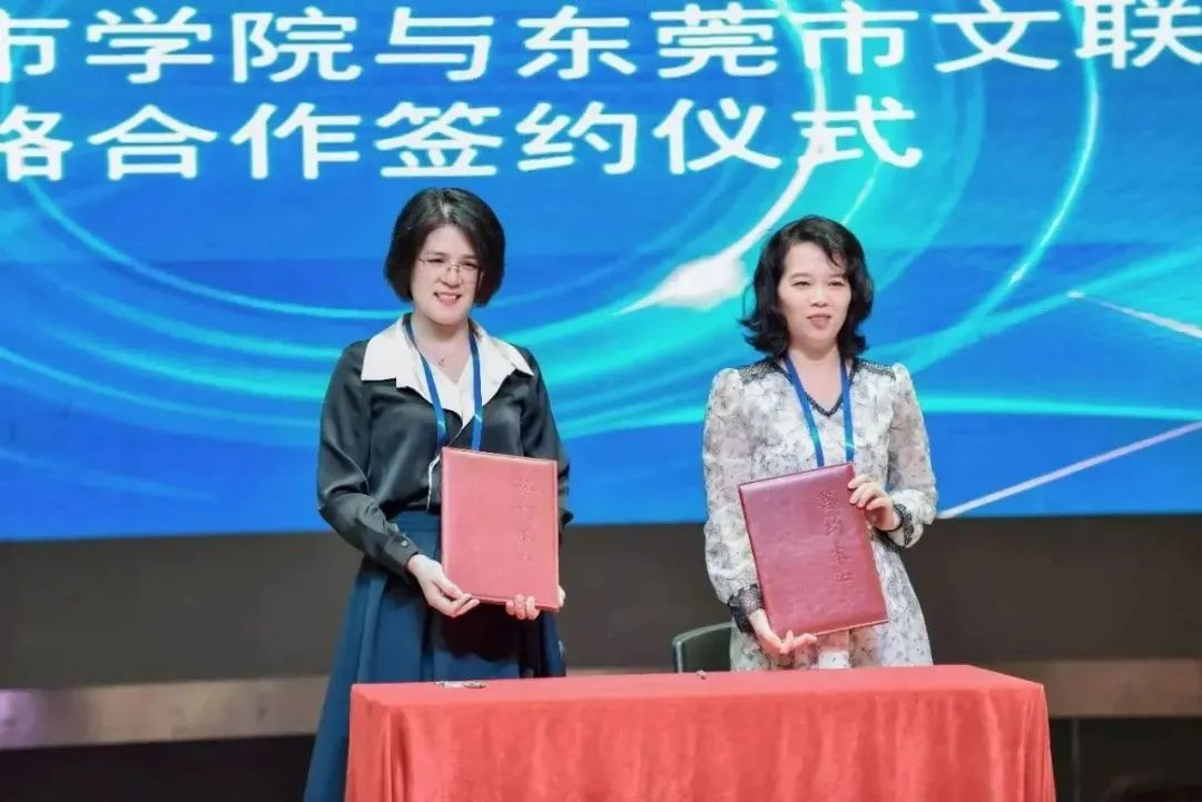 随后,双方签署战略合作协议。东莞市文联副主席林玉秀和beat365官网陈葆华副校长代表双方签订协议。