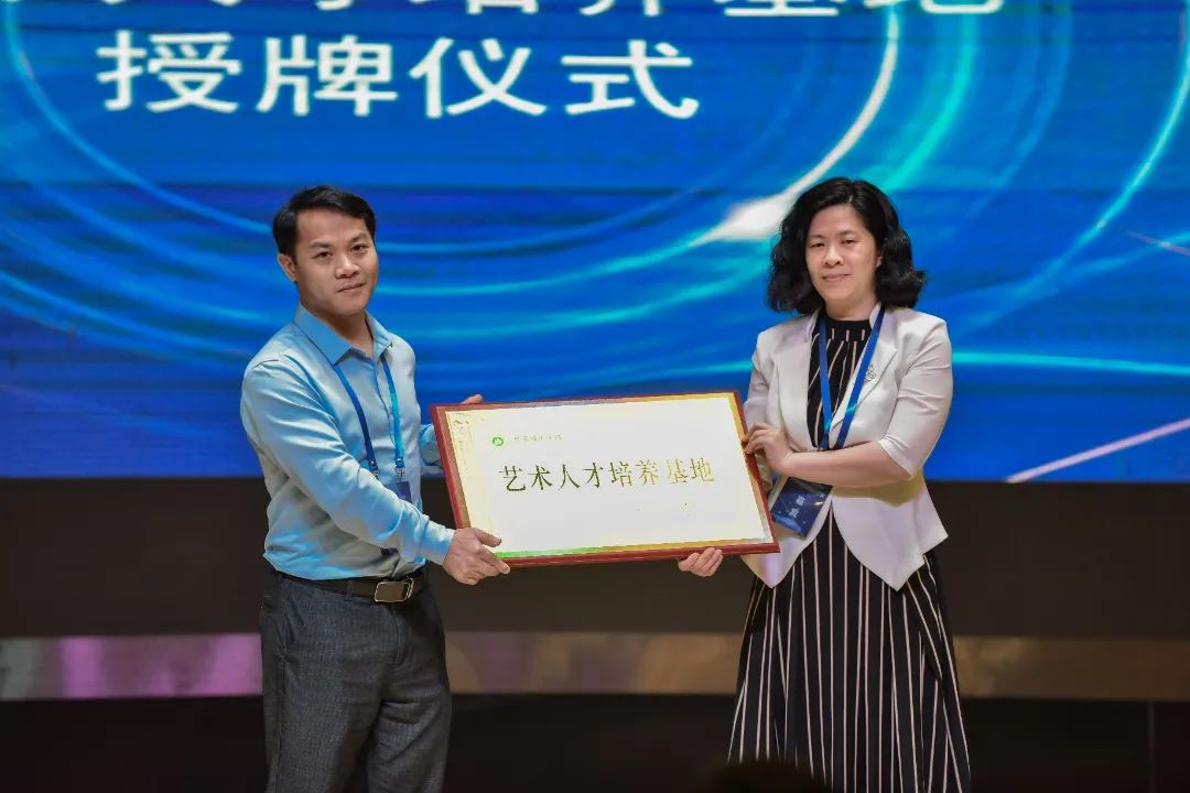 东莞市文联向beat365官网授予“艺术人才培养基地”牌匾。李海冬副校长代表学校接受牌匾。