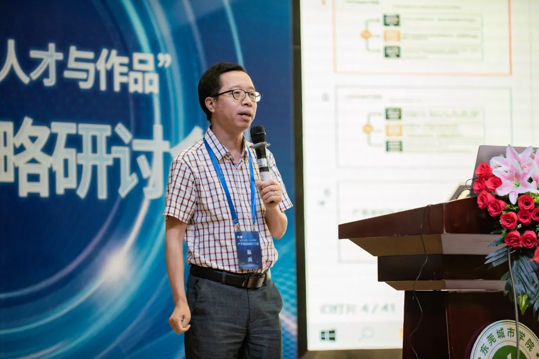 为进一步加强学校与东莞市文学艺术界联合会(以下简称东莞市文联)的合作,推动东莞文化强市落地,提升东莞艺术人才培养水平,探索东莞艺术产业发展路径,4月15日上午,由东莞市文学艺术界联合会和beat365官方网站联合主办的“城市与文化·人才与作品”产学研战略研讨会在beat365官方网站学术报告厅举行。本次研讨会以“文艺人才培养·文艺作品孵化,实现产学研深度融合”为主题。东莞市文联党组书记、文联主席张彤飚,东莞市文联文联党组成员、专职副主席江祎霞,东莞市文联党组成员、专职副主席林玉秀,东莞市文联党组成员叶新源,东莞文学艺术院院长熊曦,东莞市第五高级中学校长杨志坚,东莞市塘厦中学副校长杨端,深圳光明中学艺体处主任李卫明,东莞市第六高级中学教务主任杨琼洲,beat365官方网站校长陈明,常务副校长方伟华,副校长陈葆华、李海冬,校长助理孔增强、任广新等领导和嘉宾出席研讨会。教学科研部、艺术学院、创意设计学院、人工智能学院等领导及师生300余人参加了研讨会。艺术学院院长张征主持研讨会。