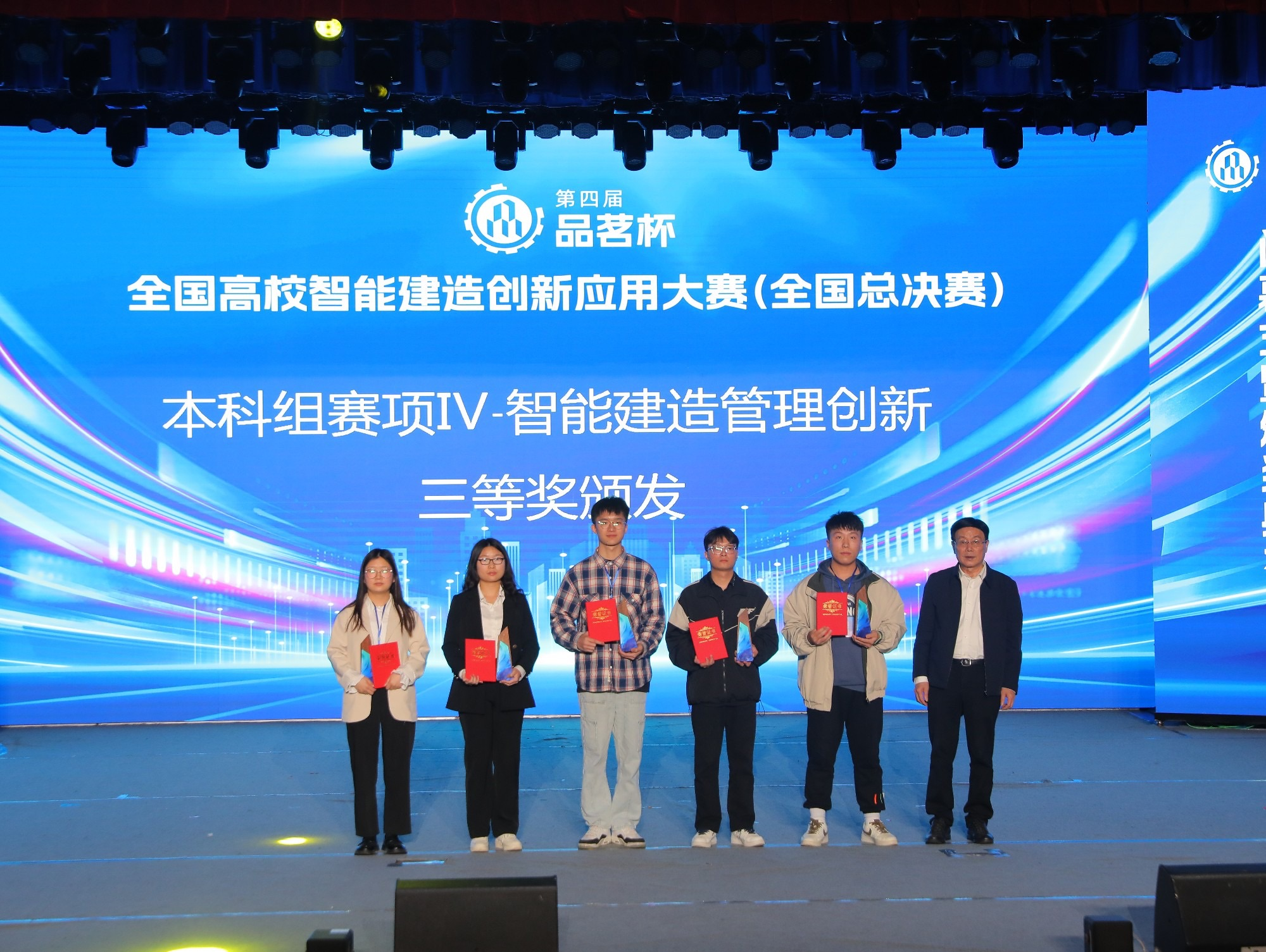 2023年4月22日,由中国建设教育协会主办的第四届“品茗杯”全国高校智能建造创新应用大赛在浙江顺利结束。本次比赛来自全国各地的304支队伍进入总决赛,由城建与环境学院肖红飞教授、陈春鸣老师领队,2021级土木工程专业学生饶逸鸿、黄永乐、龚镇涛,机器人专业陈俊安四位同学组成的团队首次参赛斩获智能建造管理创新赛项三等奖,为学校赢得了荣誉。