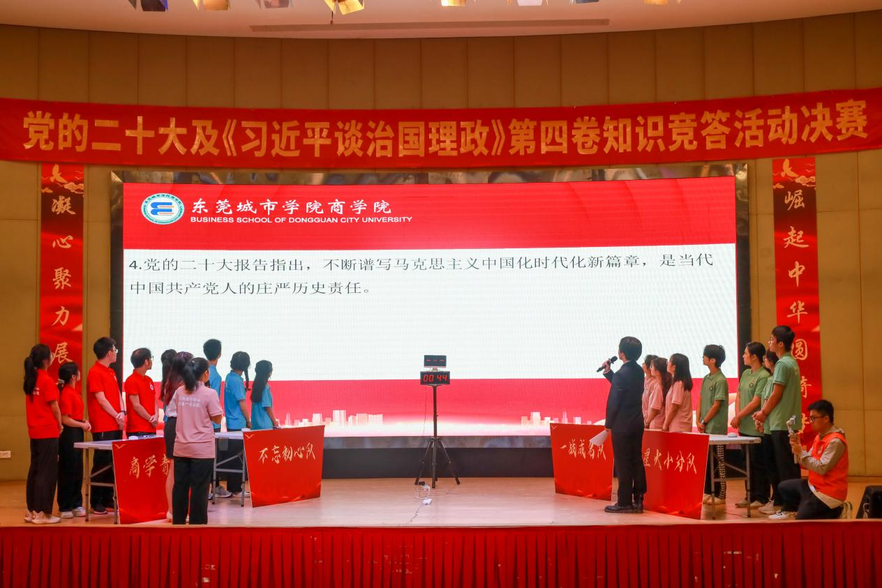 为学习贯彻党的二十大精神,学习《习近平谈治国理政》第四卷,推动党的二十大精神入脑入心,走深走实,引领推动学校各项工作高质量发展,4月25日下午,由beat365官方网站党委主办,商学院党总支承办的“党的二十大及《习近平谈治国理政》第四卷”知识竞答活动决赛在学术报告厅举行。校党委副书记、副校长刘玉侠,校长助理、商学院院长罗卫国,校党群工作部副部长姜虹,校党委组织(统战)部副部长陈东汉,校党委宣传部副部长黄璀等领导出席活动。