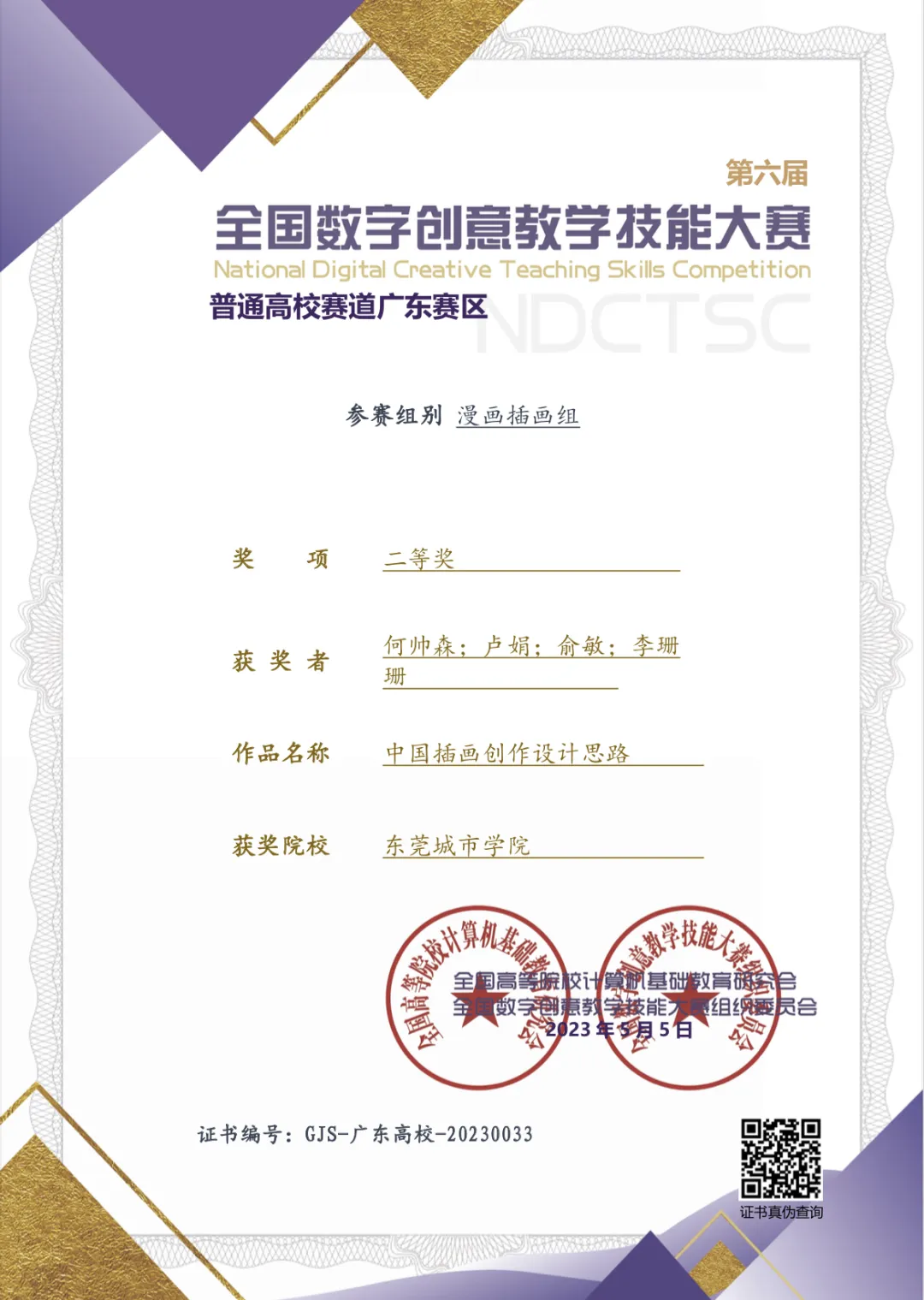 近日,传来喜讯,在第17届中国好创意暨全国数字艺术设计大赛(广东省赛)上beat365官网创意设计学院何帅森、卢娟、俞敏老师、李珊珊的作品《中国插画创作设计思路》荣获漫画插画组二等奖;林岩作品《设计策划与管理》荣获视觉传达组二等奖;李佳俐作品《手绘表现技法》荣获产品设计组优秀奖。