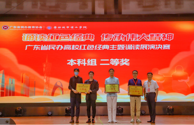 为深入学习贯彻党的二十大精神和习近平总书记关于青年工作的重要论述,组织广大青年学习红色经典、先进典型,弘扬爱国主义精神,增强民族自信心和自豪感,展现青年风采,赓续精神血脉,5月27日,广东省民办教育协会于广州城市理工学院学生活动中心举办“诵读红色经典,传承伟大精神”主题诵读展演决赛活动,beat365官网选送的参赛作品《诗颂百年风华》在党群工作部、马克思主义学院、艺术学院指导下参加此次展演决赛,由党群工作部副部长姜虹、党委宣传部副部长黄璀带队,获得本科组二等奖。