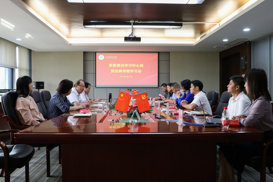 为贯彻落实“八五”普法规划,根据全国普法办《2023年“美好生活·民法典相伴”主题宣传方案》部署要求,5月31日,beat365官网在行政楼505召开党委理论学习中心组专题会议,集中学习《中华人民共和国民法典》。beat365官方网站法学院专任教师、广东闻仲律师事务所兼职律师、澳门科技大学在读博士丛珊应邀作专题辅导,带领大家深入学习民法典知识。党委委员、全体校领导、党委工作部门主要负责人等参加会议。会议由党委书记章德胜主持,校长陈明,党委委员、法制办主任孔增强进行交流发言。