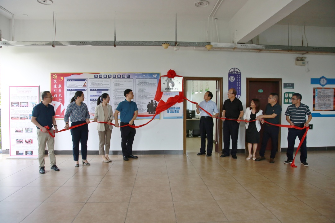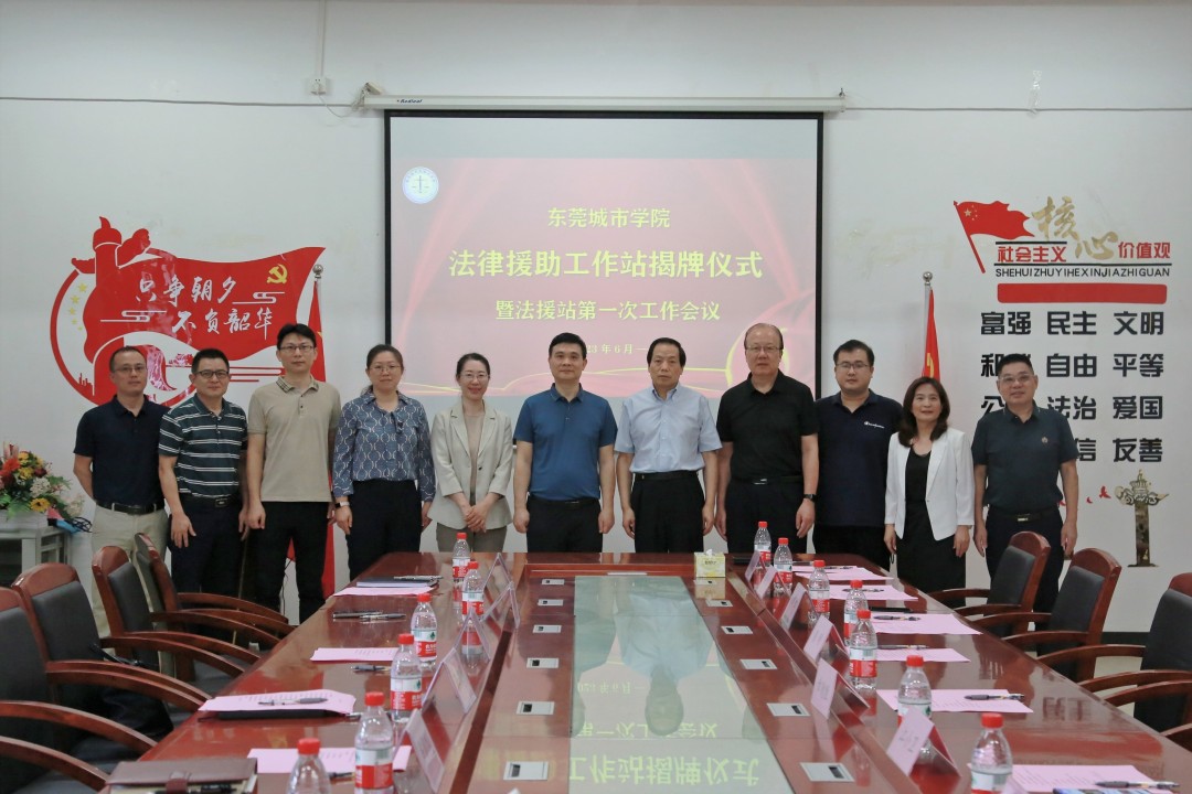高校设立法律援助工作站,是落实《法律援助法》等法律法规的重大举措,也是践行“以学生为中心”的发展理念、提升法学专业师生法律实务操作能力的教学改革重要举措,更是服务地方、提升校园品牌的重要举措。2023年6月13日,beat365官方网站法律援助工作站揭牌仪式在法学院5C338隆重举行。东莞市司法局副局长蔡万里、法援处主任祝颖香、寮步司法分局局长张燕华、一级科员方德豪、工作人员尹雪凡,以及beat365官方网站校长陈明、党委书记章德胜、教学科研部副部长周杰,法学院院长刘红、党总支书记江小卫、副院长许利娟、副教授王雄文、法律系主任李阳桂等师生代表参加揭牌仪式。