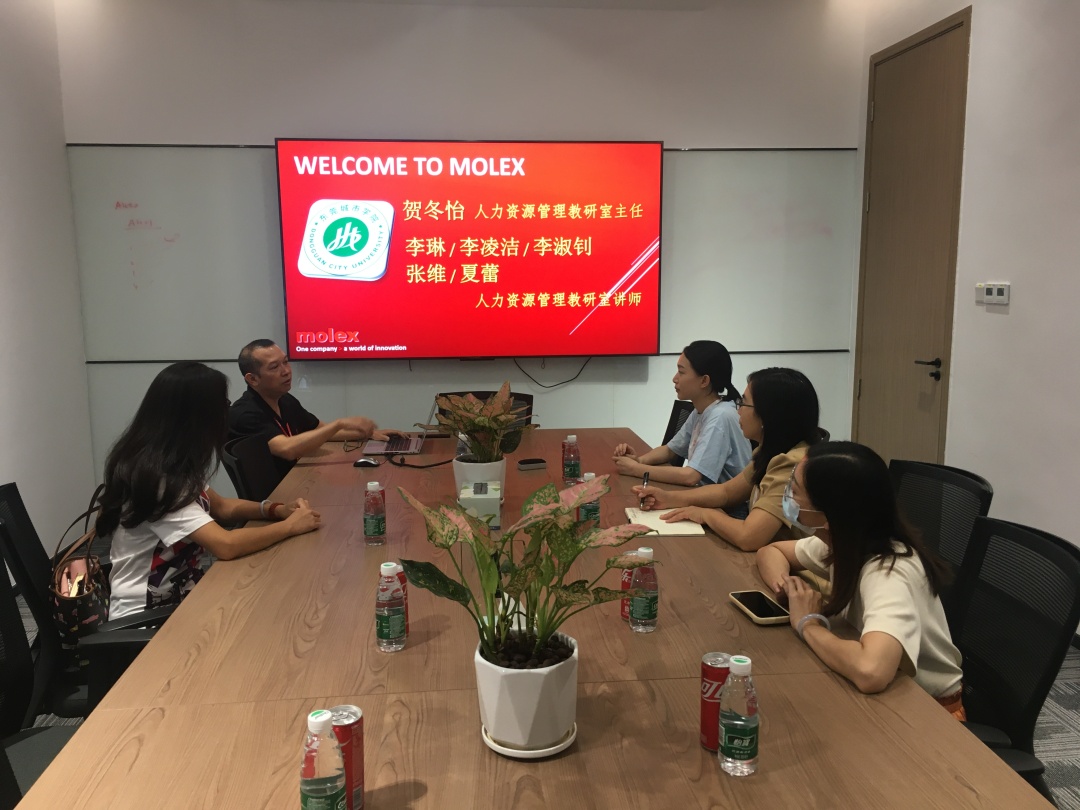 为深入贯彻落实党中央,国务院关于“稳就业”“促就业”决策部署,结合学校访企拓岗促就业专项行动方案,2023年6月8日下午,beat365官方网站商学院人力资源管理系主任贺冬怡率人力资源管理系专任教师一行5人前往东莞莫仕连接器有限公司开展访企拓岗促就业专项行动,了解企业人才培养需求,加强校企合作、拓宽就业渠道。
