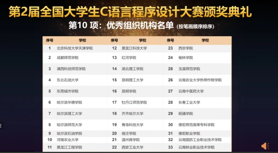 此次大赛由全国高等院校计算机基础教育研究会理工专业委员会支持,黑龙江省计算机学会、云南省高等学校计算机教学研究会等联合主办,旨在增强广大学生的编程能力和实践水平,增强创造力,营造浓厚的校园学术氛围,是实现跨地区、跨学校、跨专业人才培养的综合性赛事。本次大赛共有全国456所高校共计10975名高校大学生响应参赛。