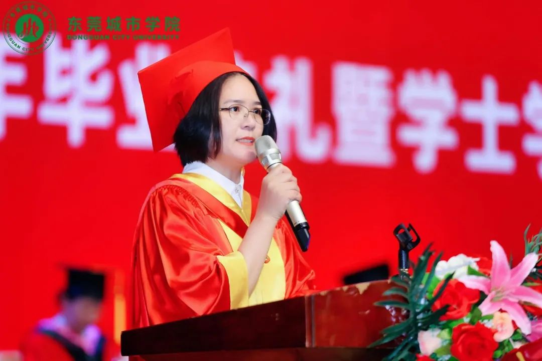 来自法学院教师代表陈程鼓励2023届毕业生在未来的职业生涯中,要不断学习和探索,创新和拓展,以应对未来的挑战和机遇。她同时提醒毕业生们,要时刻牢记社会责任和使命,用自己的专业知识和技能,为社会和人民服务。最后,他祝愿所有毕业生前途似锦,勇攀高峰,实现自己的人生价值和梦想。