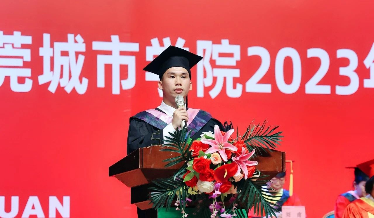 数字经济学院优秀毕业生代表方俊棠、人工智能学院优秀毕业生代表林卓煌在毕业典礼中发言,他们回顾大学四年成长的点滴,在国省市各项大赛中屡获佳绩,他们同时感谢学校和老师们对他们的指导和支持,让他们在学术和实践上都取得了不俗的成绩。他们表示,即将踏上新的人生征程,他们会继续努力学习,不断提升自己的能力,为社会做出更多的贡献。最后,他们祝愿所有毕业生前程似锦,未来可期。