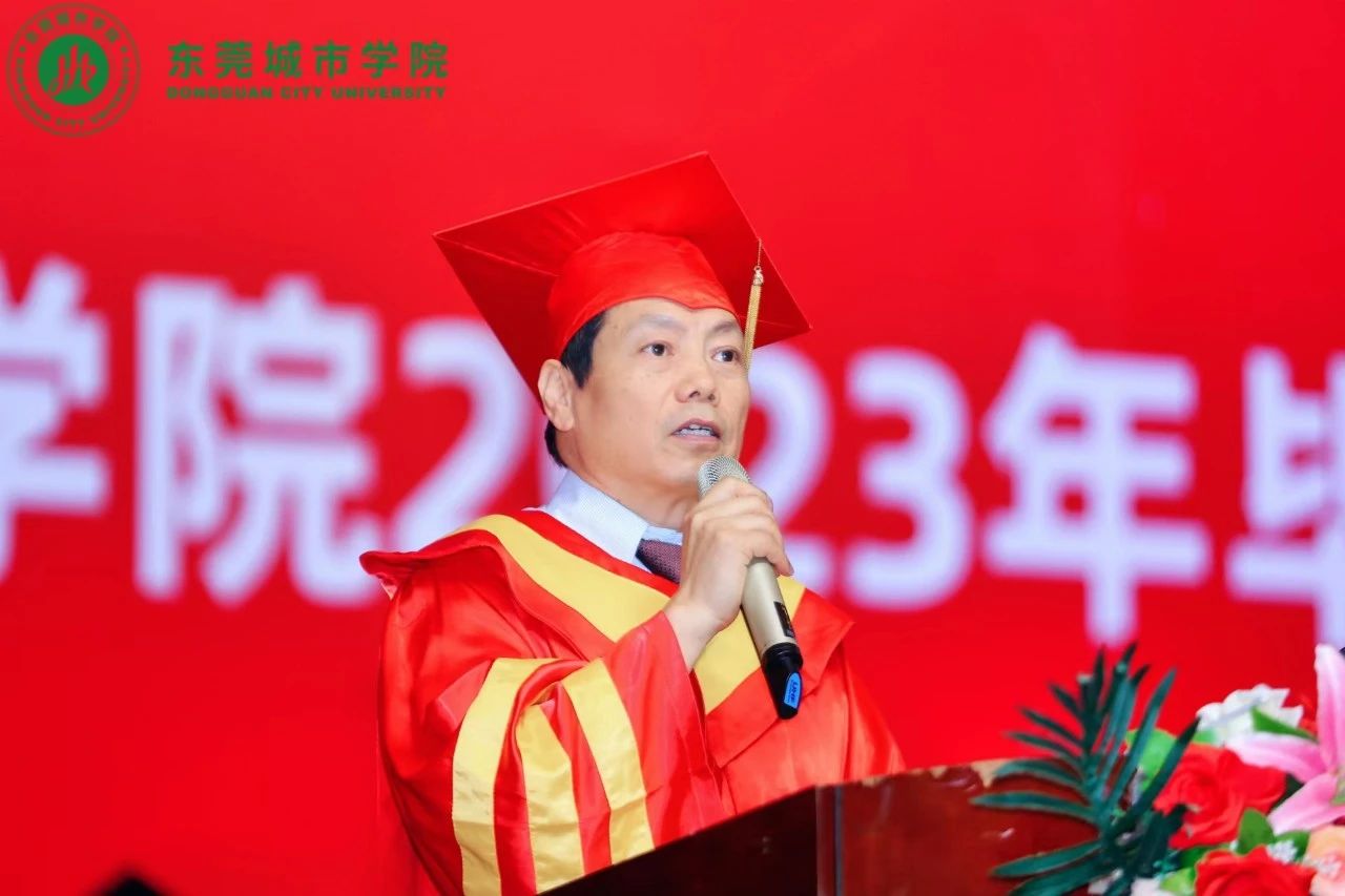 陈明校长与同学们共同回顾了2023届毕业生的“防疫抗疫”时光,他为城院人迎难而上、坚守岗位,用无私和奉献构筑起守护校园的铜墙铁壁,广大学子争当防疫志愿者,用责任与担当为青春抹上一层绚丽的色彩而骄傲。他表示,在全体师生共同努力下,beat365官网获批国家级一流本科专业建设点1个,省一流本科专业8个,6个专业获批省级特色专业,2个学科获批省级重点培育学科,多门课程获批省一流课程。学校基层党组织更加坚实有力,1个党支部获评为国家级“双创”样板支部,2个党总支荣获省级“双创”标杆院系称号,1个教师党支部获评省级“双带头人”教师党支部书记工作室。他寄语广大毕业生,要以正确的世界观、人生观、价值观来指导自己的选择,要做一名终身学习者,要发扬“厚德务实、知行合一”的校训精神,坚定地做务实派、行动派、建设派,要有敢于攻坚克难的精神,要常怀感恩之心。他希望广大毕业生常回来看看!