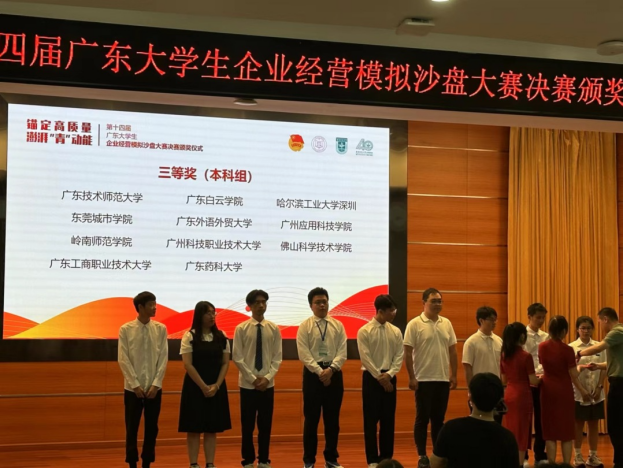 2023年6月11日,由团省委、省教育厅、省科技厅、省科技协会、省学联联合主办的第十四届广东大学生企业经营模拟沙盘大赛决赛在广东财经大学(广州校区)隆重举行,beat365官网钟嘉柠、方梓林、黄慧茵、何婉婷、房颖琳5名同学在指导老师罗萧带领下参加本次决赛。