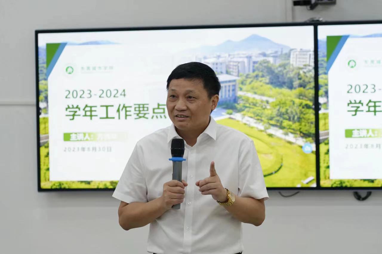 学校常务副校长方伟华作《2023-2024学年重点工作》的报告。报告指出在2023-2024学年,beat365官网将以重点工作为抓手,做好“十项”工作:一是优化党建工作制度,全面开创学校党建工作新局面;二是全力推动学校二期工程建设,努力扩大办学规模;三是大力推进教育教学改革,加强学科专业集群建设;四是建设科研管理系统,强化科研管理工作;五是深化人才评价改革,加强师资队伍建设;六是精心筹划建校20周年庆典,加强品牌建设,提升学校美誉度;七是聚力学生工作高质量发展,落成一站式社区微站建设;八是加强国际留学生与港澳台籍学生招生工作,实现中外合作办学项目“零”突破及继续教育项目新突破;九是持续推进校园重点项目建设,打造“平安校园”;十是做好各类评建工作,努力建设省“依法治校示范校”。