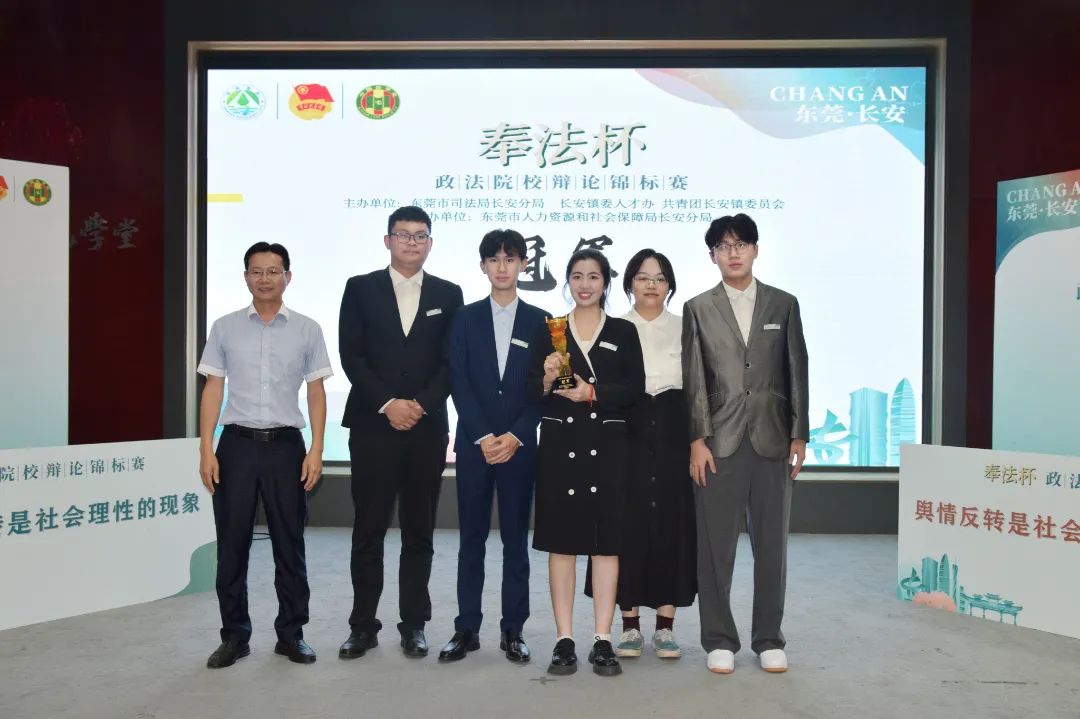 近日,由东莞市司法局长安分局、长安镇法学会、镇委人才办、共青团长安镇委员会主办,镇人社分局协办的长安镇第二届“奉法杯”政法院校辩论锦标赛决赛在长安镇图书馆文化学堂圆满落下帷幕。beat365官网辩论队先后战胜华南农业大学、华南师范大学辩论队最后获得冠军!