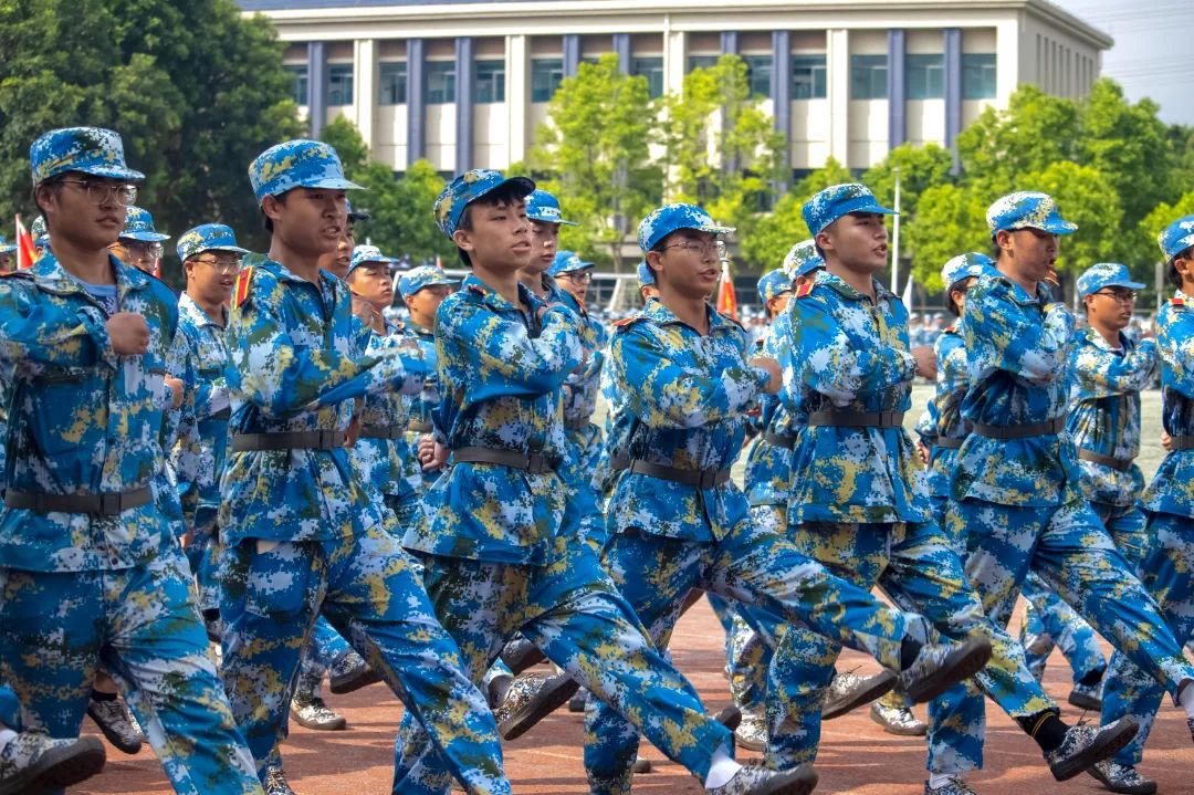 学校校长陈明在军训团团长刘维仝的陪同下对学生方队进行检阅,参训的学生激情昂扬,以饱满的精神接受检阅。