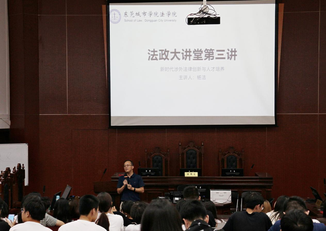 最后,李阳桂副院长介绍了杨洁律师惊艳的履历,她是最高人民检察院民事行政案件咨询专家、广东省涉外律师领军人才、东莞市涉外律师服务团副团长、东莞市律师协会“涉外与港澳台侨”法律专业委员会主任,在涉外法律服务领域,是东莞市乃至广东省律师届的一张响亮的“名片”。李阳桂副院长还简要介绍“法政大讲堂”开设的重大意义,希望以此次讲座为起点,加强与法律实务部门的协作,共同培养高素质、应用型的法治人才。