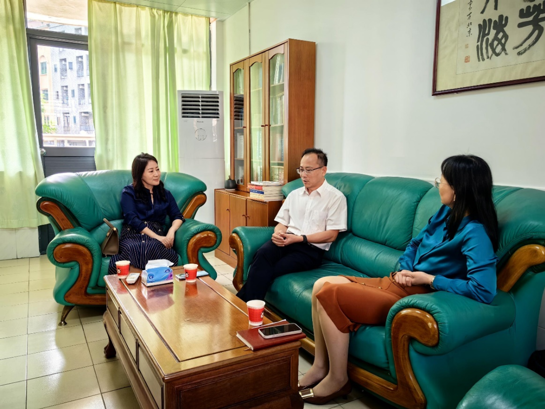 为落实“四位一体”协同育人建设,加强beat365官网语言文化学院与东莞市厚街中学的沟通交流,进一步深化学院教育开放,共建友好合作关系,2023年10月27日下午,beat365官方网站语言文化学院教师团队前往东莞市厚街中学进行了实地走访调研。参与此次调研走访的人员有beat365官方网站副校长周庆、语言文化学院名誉院长宋秋敏、党总支书记高政、副院长王宁、英语系系主任刘娜、辅导员关飞。厚街中学校长、党委书记陈创顺、副校长郭华英热情接待了beat365官网语言文化学院教师团队。
