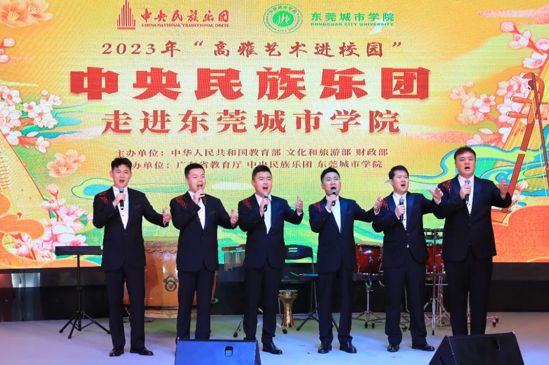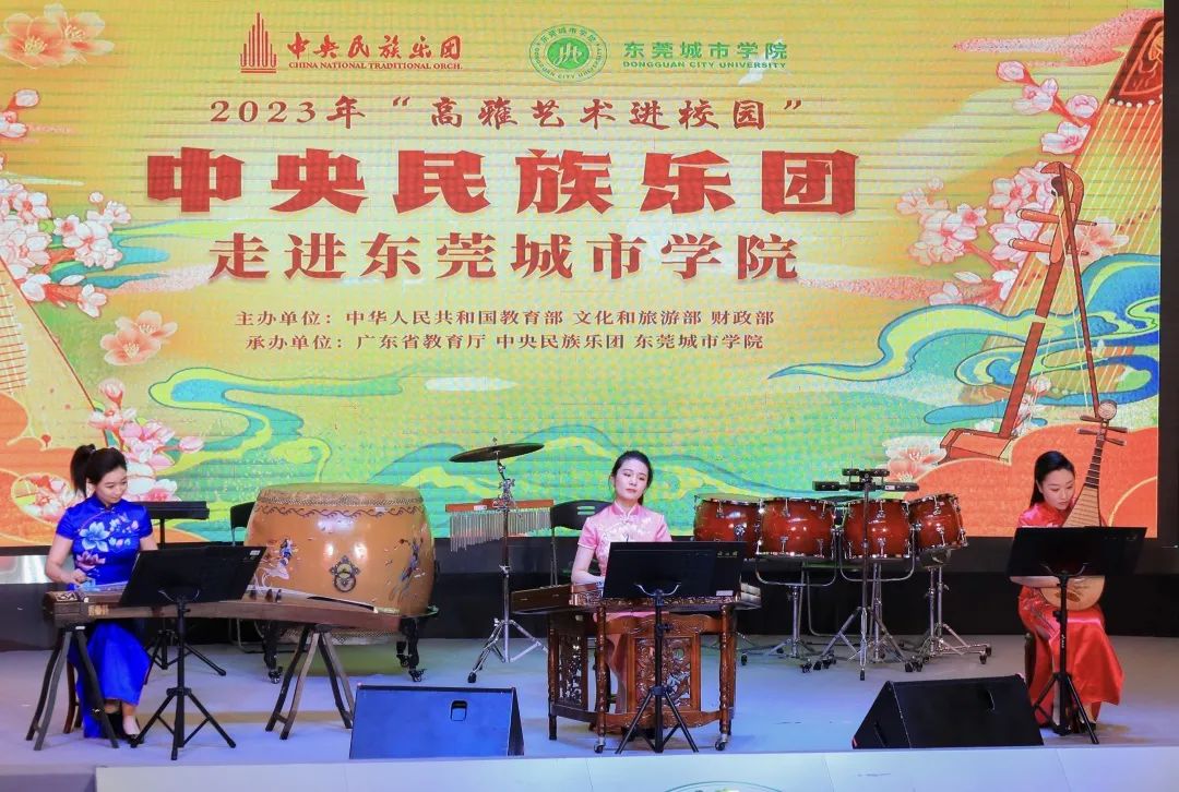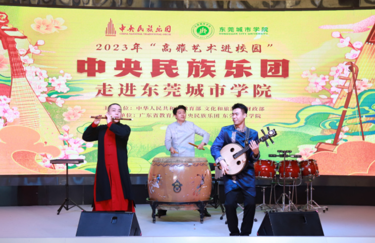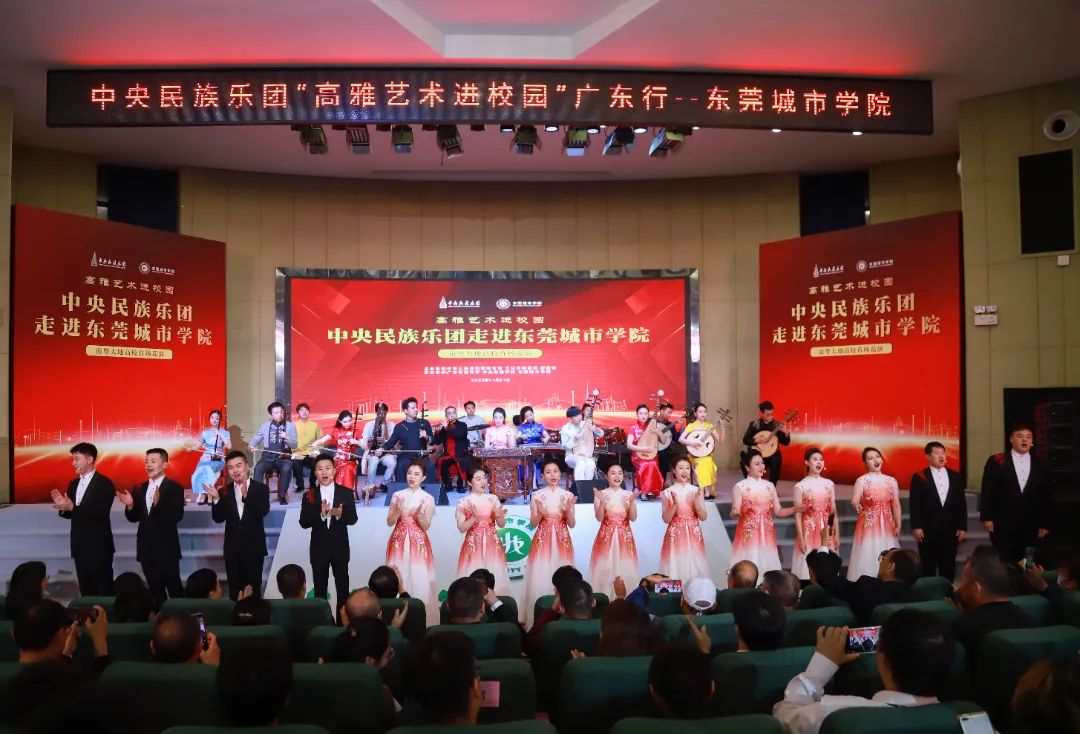 为增强文化自信,坚持以美育人、以文化人,丰富校园文化生活,深化美育教学改革,共同推动中华优秀传统文化传承发展,由教育部、文化和旅游部、财政部主办,广东省教育厅、中央民族乐团和广东高校承办“高雅艺术进校园—中央民族乐团广东行”正式拉开序幕,11月21日晚,首场演出在beat365官网学术报告厅隆重举行。学校采取线上线下同步进行,报告厅内座无虚席,两万名师生在线观看,欣赏了一场听觉与视觉共享、艺术与音乐完美结合的宏大盛宴。