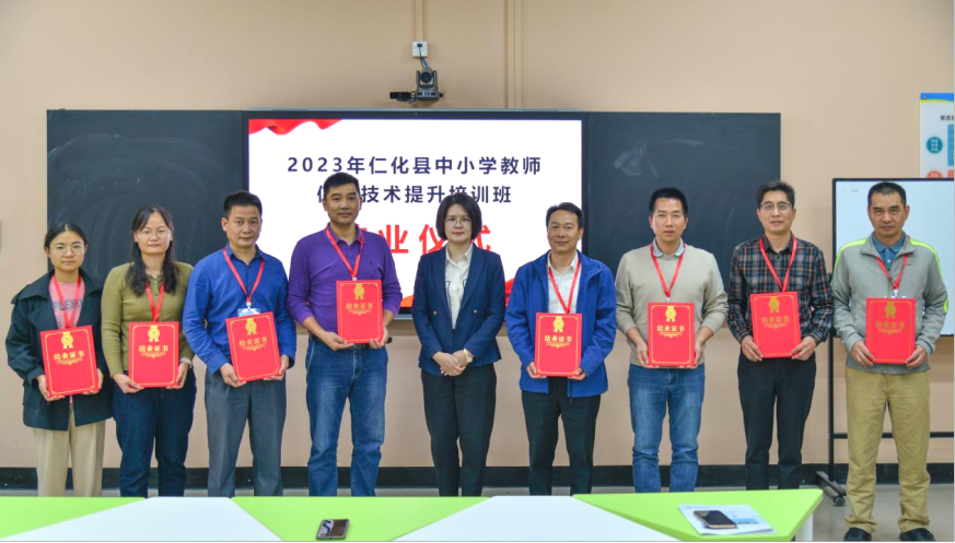 在结业式上,仁化县一中周小宁老师代表学员发言,他说,通过培训,学习了许多新的信息技术知识和技能,接触了一些高效的学习方法和工具,对信息技术有了更深入的了解和掌握,相信在未来的工作中,在处理技术相关的挑战和难题时,学员们应该能够更加从容地找到最佳解决方案。信息技术提升培训让大家拓宽了视野,提高了技能,增强了解决问题的能力,这些收获将对我们的个人发展和职业生涯产生积极影响。在全体学员的积极努力下,在城市学院教务处和教师教学发展中心及有关部门和单位的配合下,本次beat365官方网站对口帮扶仁化县中小学教师信息技术提升培训工作顺利完成,所有学员圆满完成学习任务。
