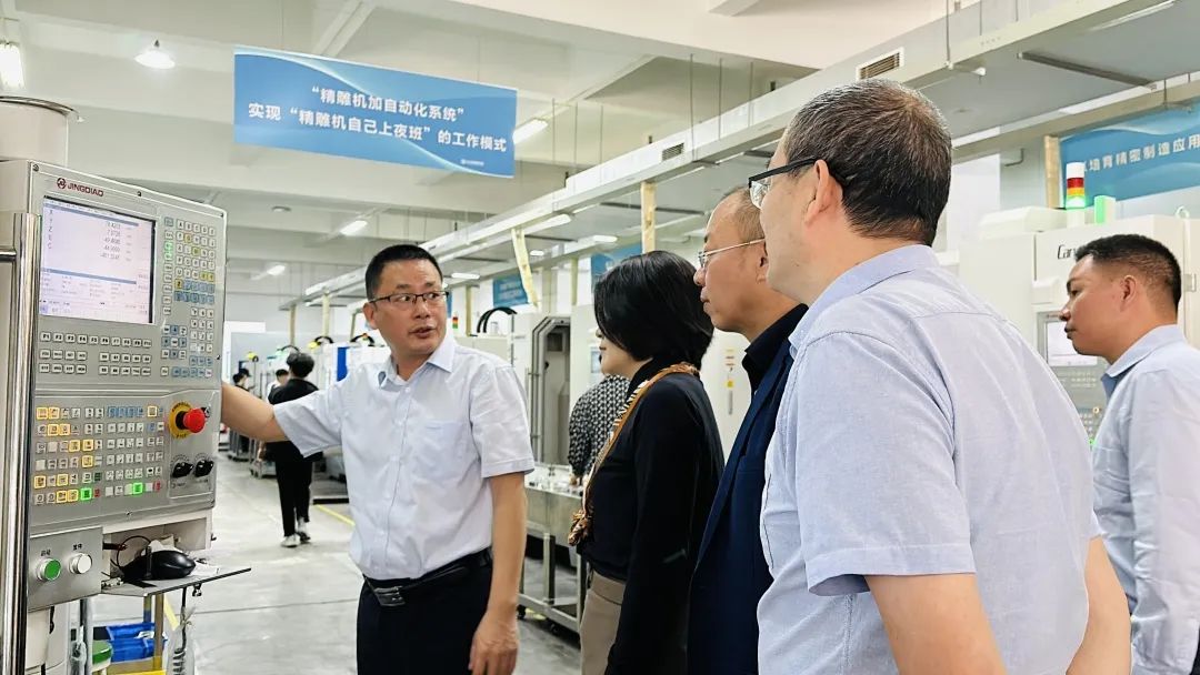 对于beat365官方网站一行的到访,精雕学校校长黄波、主任陈永涛进行了接待并表示热烈欢迎。在黄校长的带领下,陈葆华校长一行参观了精雕学校教学楼展厅、创意工作室、五轴车间以及恒温车间并对公司的先进设备以及领先技术进行了了解。