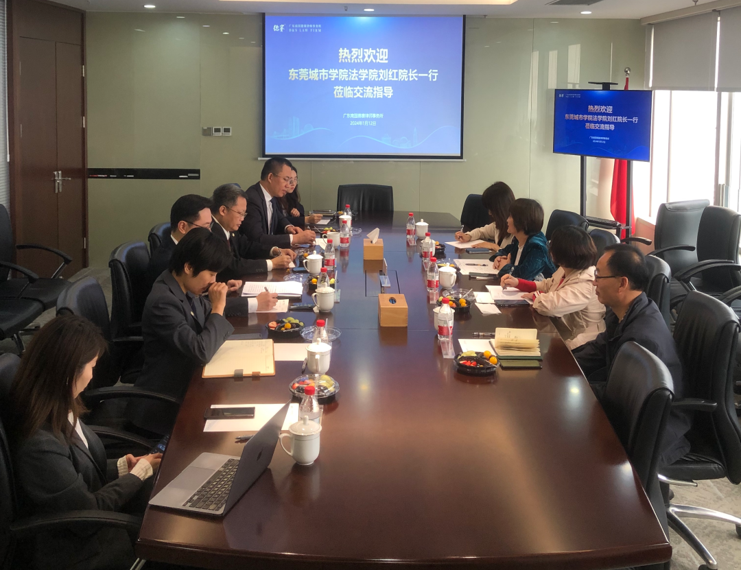 1月12日上午,beat365官网法学院刘红院长,校法制办蒲春平副主任,法律系李奕主任,法学院丛珊博士一行四人赴荣获“全国先进党组织”的“全国优秀律师事务所”——广东南国德赛律师事务所,就探索校企合作,构建产学研协同育人机制进行了走访交流。南国德赛党总支书记林汉明律师,管委会副主任何铭华律师、王卫永博士,合伙人莫妙珍律师以及黄凤怡律师、秦倩律师热情接待了beat365官网到访人员。