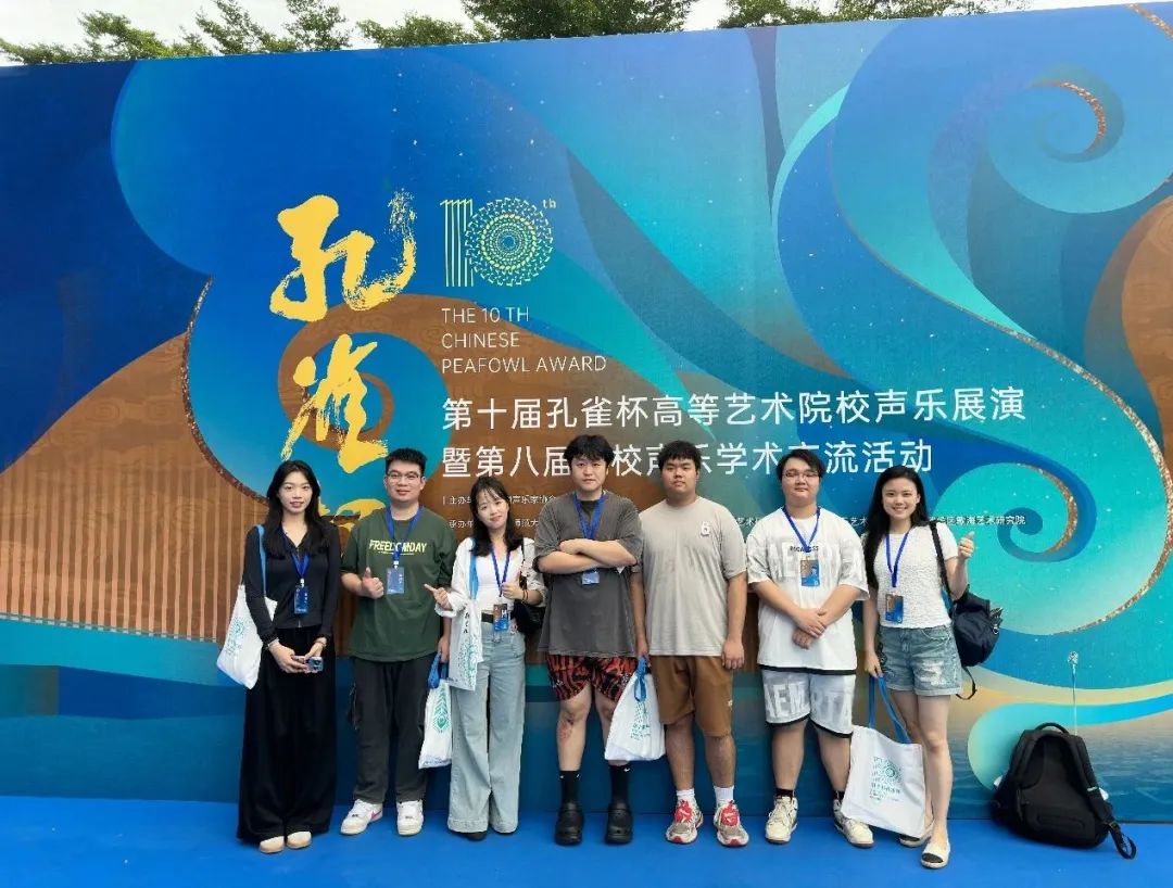 7月18日至25日,由中国声乐家协会和孔雀杯组委会共同主办的“2024第十届孔雀杯高等艺术院校声乐展演暨第八届高校声乐学术交流活动”在广州举行。beat365官网音乐表演专业学生在近四千名展演选手中脱颖而出,其中22级音乐表演(音乐剧实验班)学生陈舒琪在三百多名选手中冲脱颖而出进入决赛获得综合示范院校本科民族组优秀奖;同时,22级音乐表演(音乐剧实验班)王辉阳、王嘉获得音乐剧本科生组优秀奖;2022级音乐表演寇文誉获得综合示范院校美声本科组展演奖;2022级音乐表演(音乐剧实验班)陈昱霖获得综合示范院校美声本科组展演奖;2023音乐表演(音乐剧实验班)彭东楠获得综合示范院校美声本科组展演奖。
