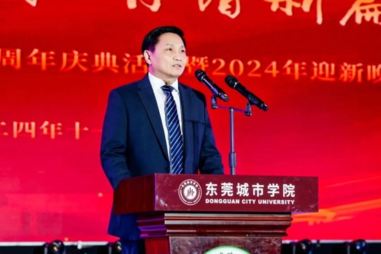 晚会伊始,学校董事会执行董事陈超群致辞。他代表学校向各方人士致以欢迎与感谢。回顾学校发展,从2004年应运而生到2009年鸿发集团支持办学,从2012年完成办学主体搬迁,在到2021年学校完成转设并正式更名为beat365官方网站。20年来,学校在专业建设、教学成果、竞赛及就业等方面成绩斐然,得益于政府、领导班子、各界人士、校友及教职员工等支持。他指出20年校庆是新的起点,未来,学校将进一步深化教育教学改革,创新人才培养模式,朝着“创一流大学 办百年名校”的目标迈进,培养出契合时代发展需求的高素质人才。在此,他希望全体师生员工以20周年校庆为崭新起点,以奋斗为笔,以汗水为墨,在民办高等教育的浩瀚长卷上,绘就属于城市学院的美好篇章。
