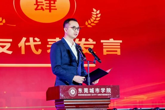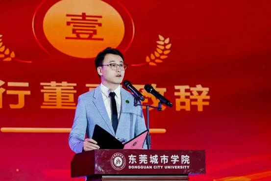 广东培正学院校长黄弢作为兄弟院校代表致辞。他希望两校保持着密切的联系,广泛开展交流与合作相互学习、共同发展,携手并进,共同铸造美好的未来,共同推进广东民办教育的发展。