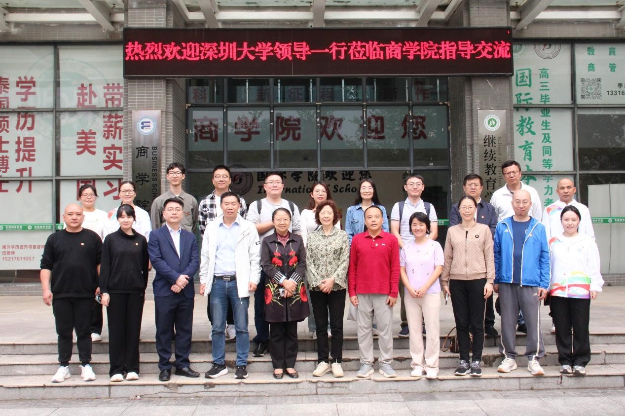 来访一行在商学院5A325会议室开展座谈会。会上,商学院党总支书记李梦丹和商学院副院长肖文锋分别向与会人员介绍了商学院党建、教学和科研方面的基本情况,并表示将以深圳大学党建“组团式”帮扶为契机,紧密结合商学院实际,注重各自的党建工作优势凝练,相互学习借鉴,促进党建与业务工作融合,实现互利共赢,全面推进帮扶工作落地见效。