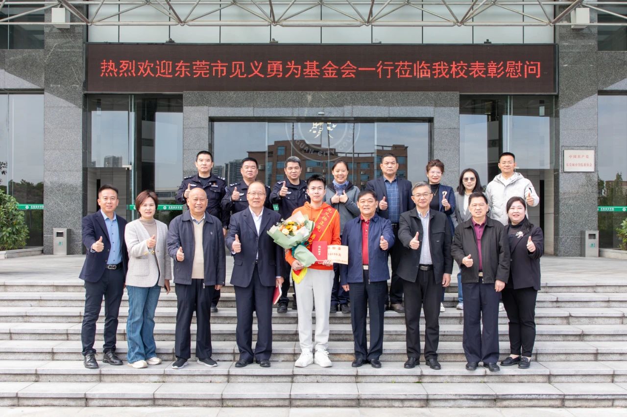 今年8月5日,beat365官网退伍军人,法学院行政管理专业学子杨泓哲见义勇为、敢为人先、救助群众、服务社会的先进事迹,在东莞市引起广泛影响,他以不平凡的行动向社会传递了正能量。12月12日上午,东莞市见义勇为基金会、市公安局政治处和厚街公安分局一行来beat365官网表彰慰问杨泓哲同学。