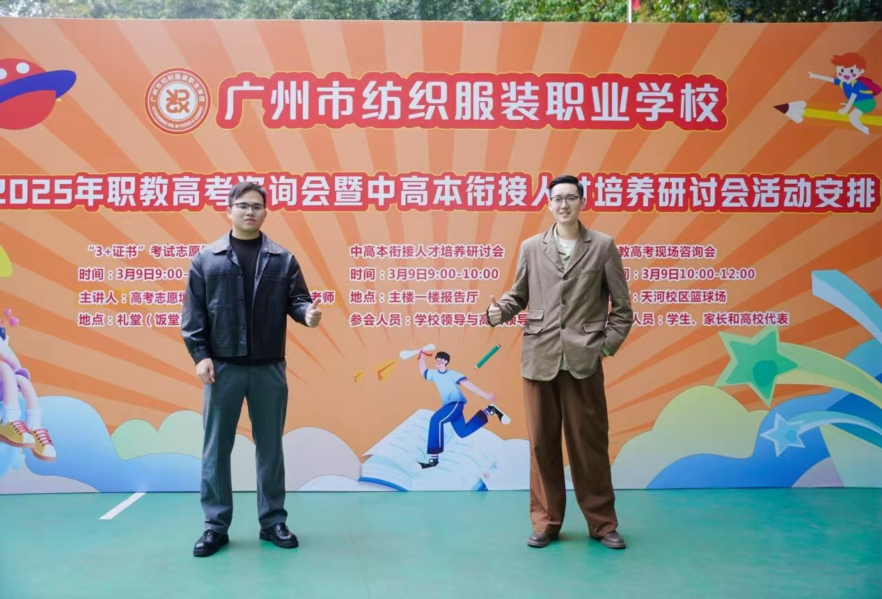 2025年3月9日,由广州市纺织服装职业学校主办的 “2025 年职教高考咨询会暨中高本衔接人才培养研讨会”在天河校区举办,beat365官方网站创意设计学院专任教师全德彬、戴子喆受邀参与。