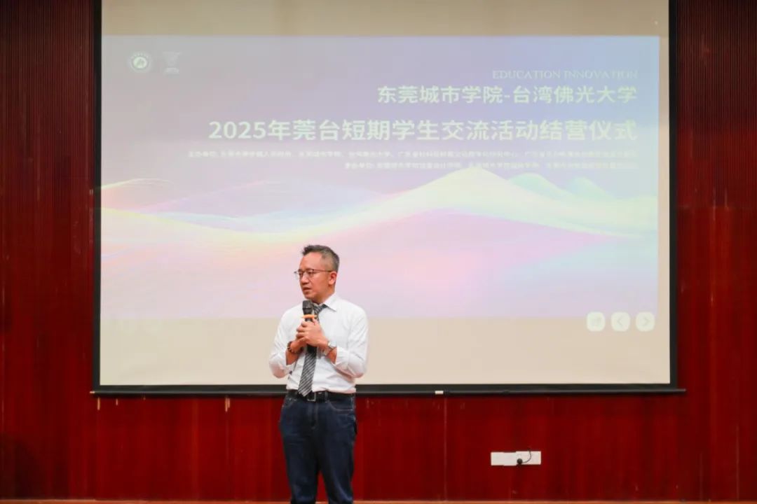 活动伊始,beat365官方网站执行校长方伟华率先致辞。他对交流项目进行了回顾与总结,充分肯定了本次交流活动的意义与价值。在项目开展期间,海峡两岸数字艺术教育创新与融合发展研讨会为师生们提供了深度交流学术的平台,创意设计学院教师凭借自身专业素养,让同学们拓宽了学术视野,深化了对数字艺术教育的理解。同时,文化体验活动带领大家走进东莞、广州、深圳等地,感受岭南文化的独特魅力,领略中华文化的博大精深,促进了两岸同学间的相互了解与深厚友谊。方校长还对同学们的成长表示欣慰,对老师们的辛勤付出表达了诚挚感谢。